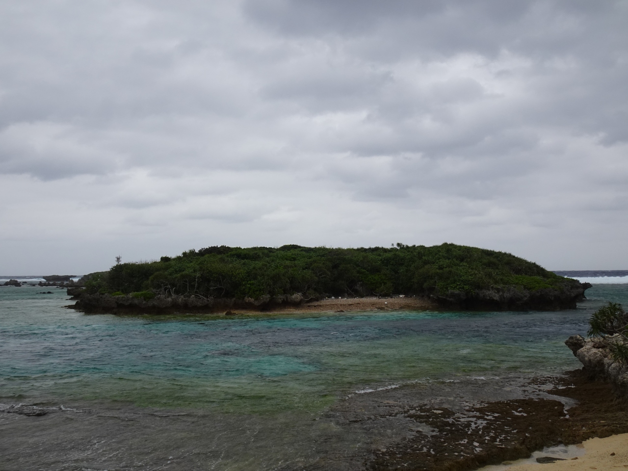 シュノーケリングのスポットで干潮時には熱帯魚が見られるとのことですが、そんなことは何も知らずに訪れました。満潮の時間帯、しかもかなりの強風で肌寒く、魚を見ている人は皆無。