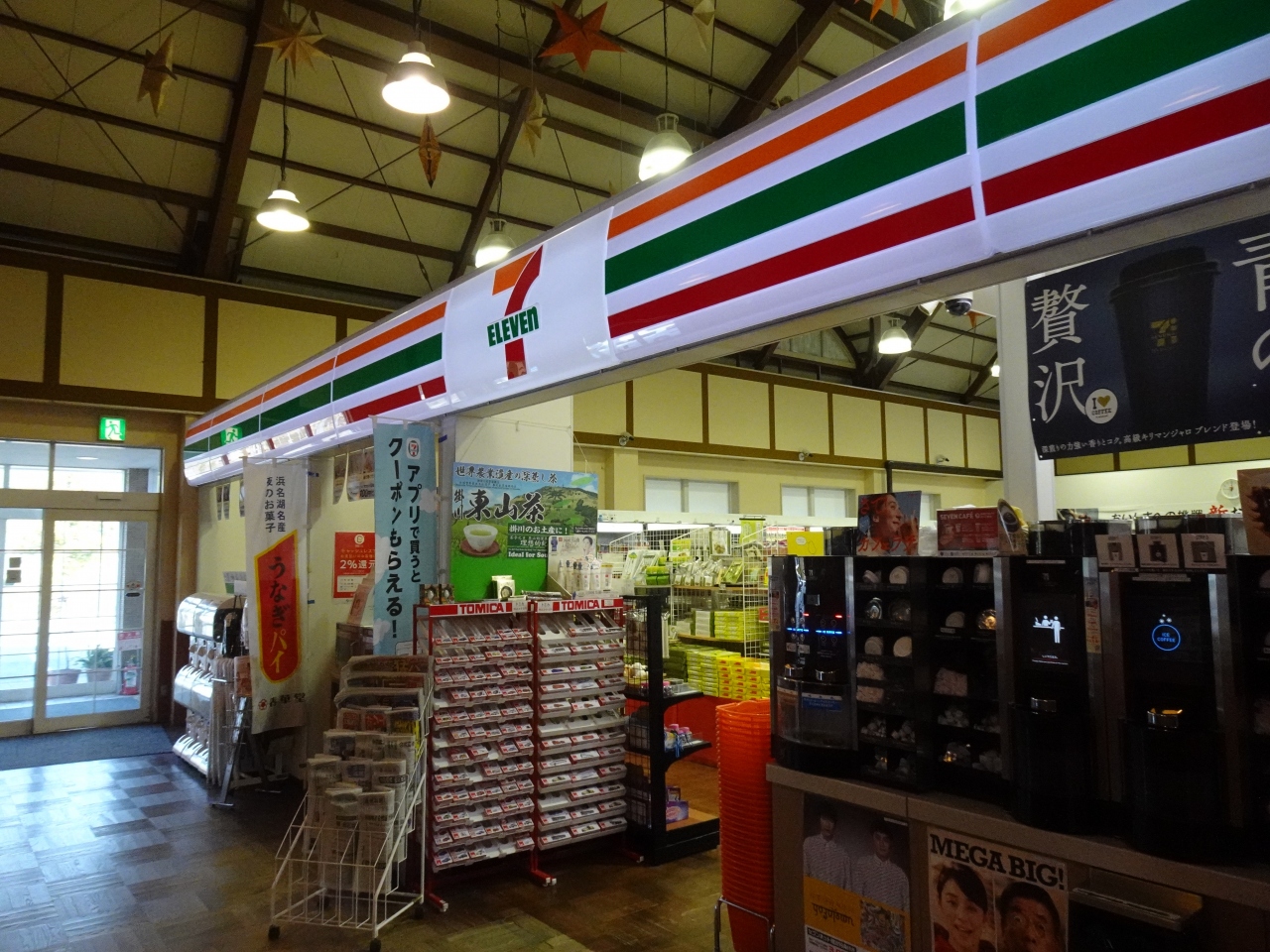 下り線と上り線両側に施設がありますが食堂と売店が揃うのは下り線側。道の駅のスタンプも下りにあります。長距離トラックの需要を見込み、大型車用の駐車スペースの割合が高くまた朝7時から19時までと営業時間が長いのが特徴。