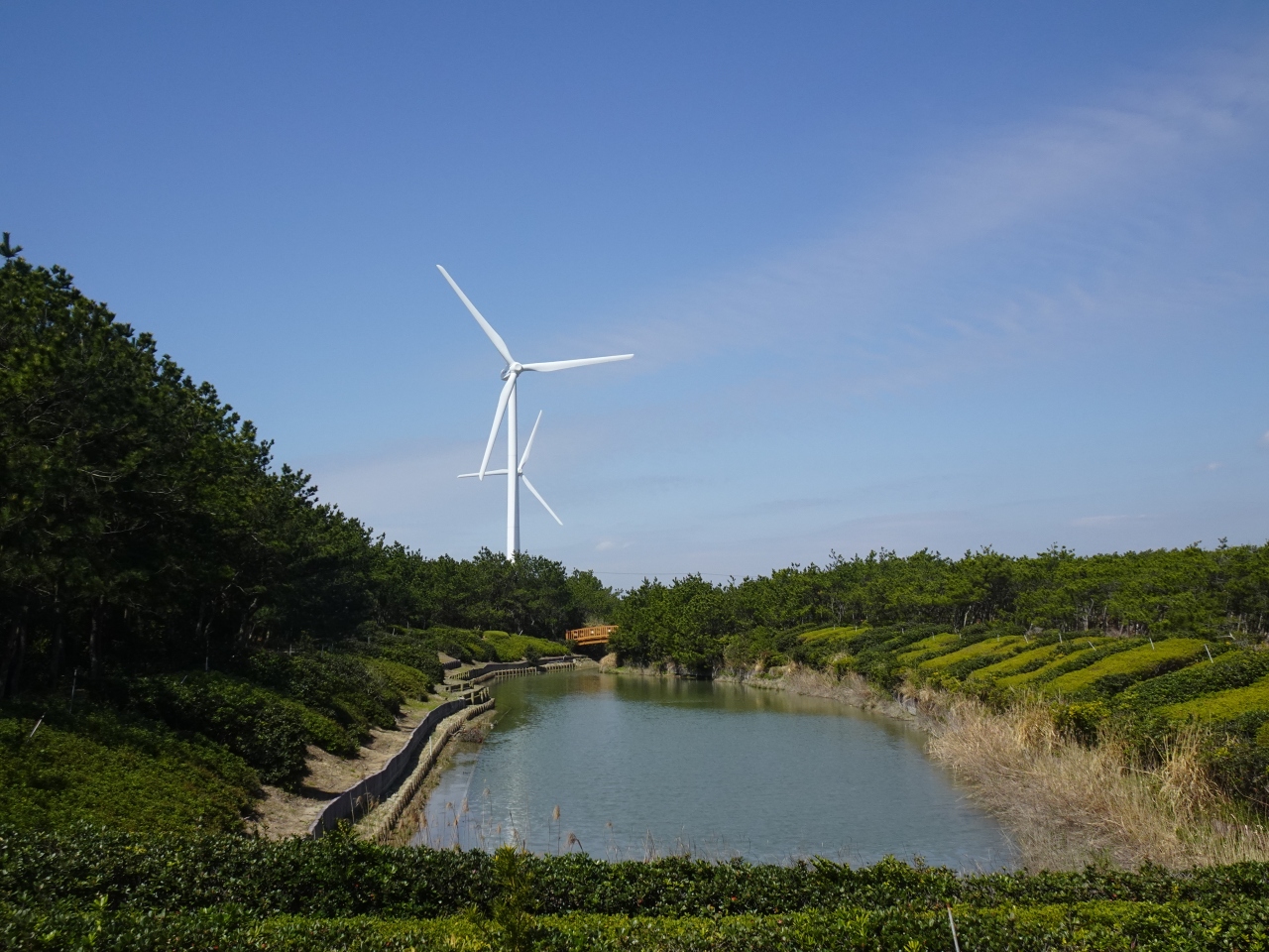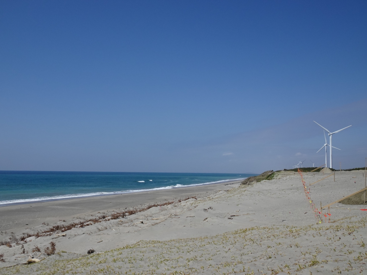 海岸には発電用の大きな風車が望め、また砂上には風紋が見られるなど風とは縁の深い地域であることが分かります。