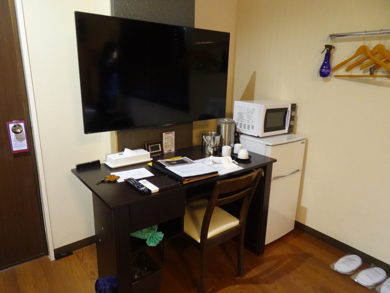 最大5人利用できる部屋を3名で宿泊したので広さはまずまず。ただし室内はアクセントカラーとして赤が使われ何となく落ち着かない雰囲気。ベッドが中央寄りに配置されているせいがあるかもしれません。室内のWI-FIは弱めです。
