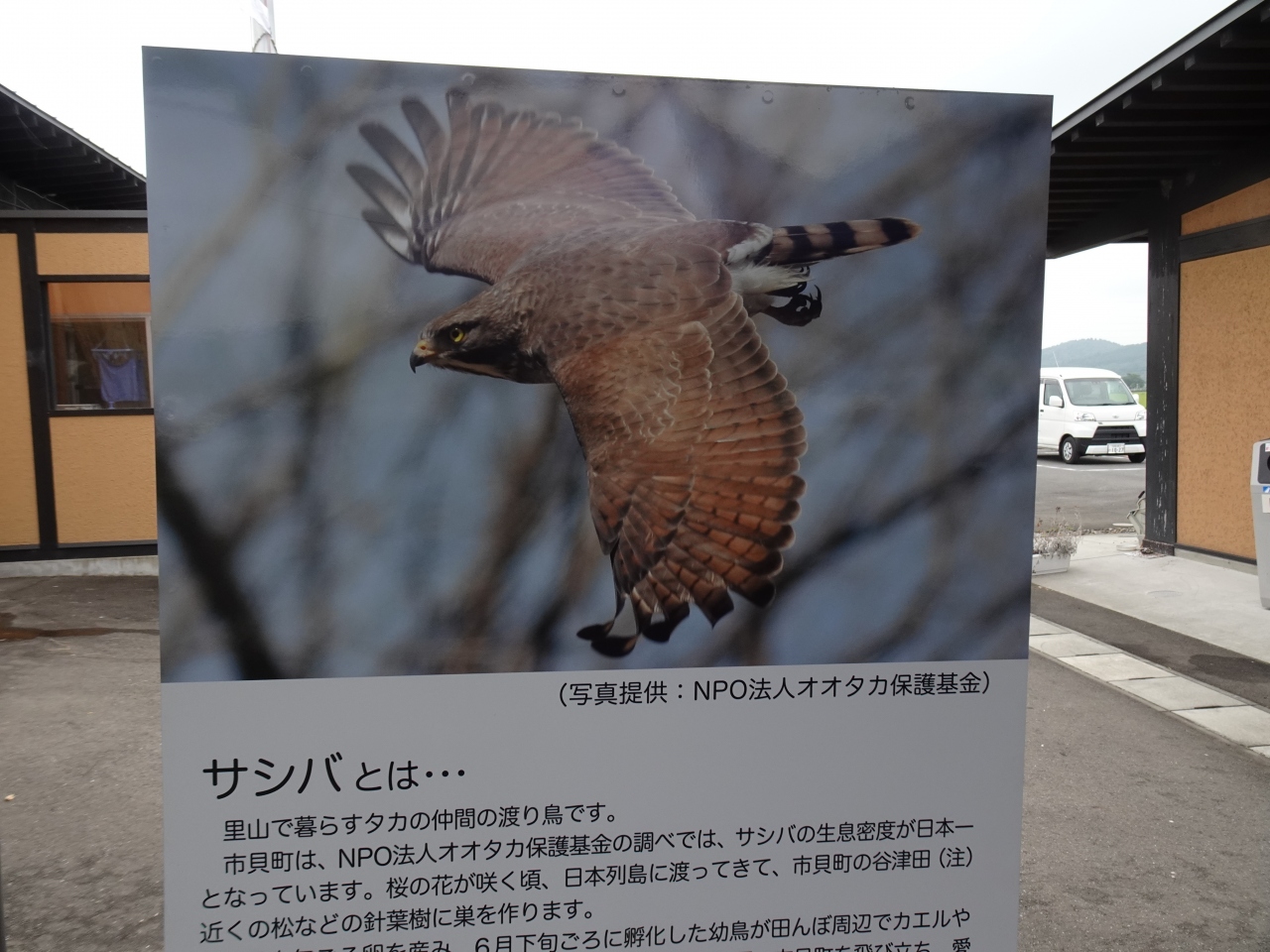 直売所の野菜・果物はお手頃でまずまずの賑わい。また「サシバ」(鷹の仲間)つながりで市貝町とは交流都市の宮古島の特産品も販売されていました。