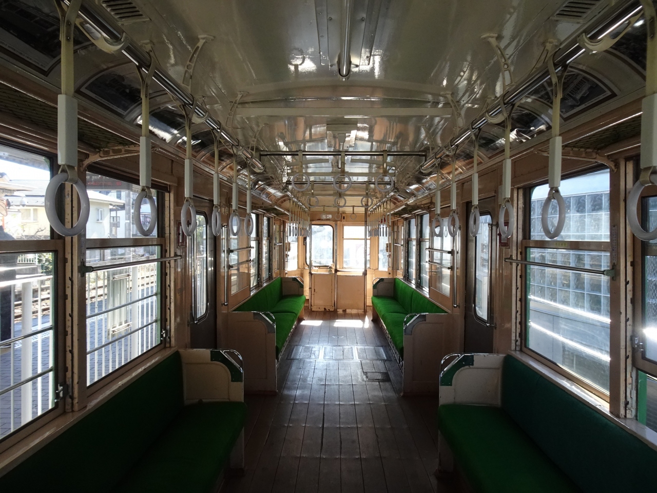 全線専用軌道を走るので時間は正確、日中でも6分間隔の運行と脚としては便利。2両編成の車内の座席は運転席側に向いている(前方車両は前向き、後方車両は後ろ向きに着席)ので車窓を楽しむこともできます。- 旅行時期