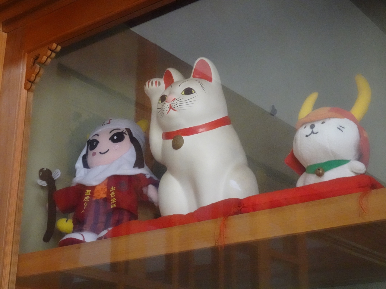 井伊家の2代藩主直孝が豪徳寺の猫の手招きにより雷雨の難を免れたという言い伝えがあるとのこと。これが豪徳寺が招き猫発祥の地と言われる由縁で、境内の招猫殿には多くの招き猫が祀られています。