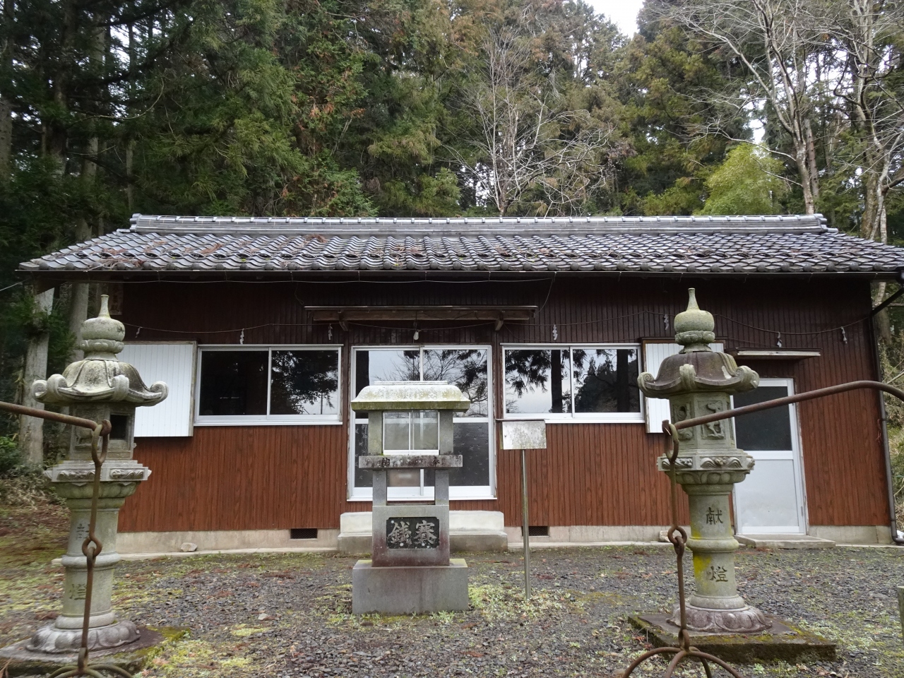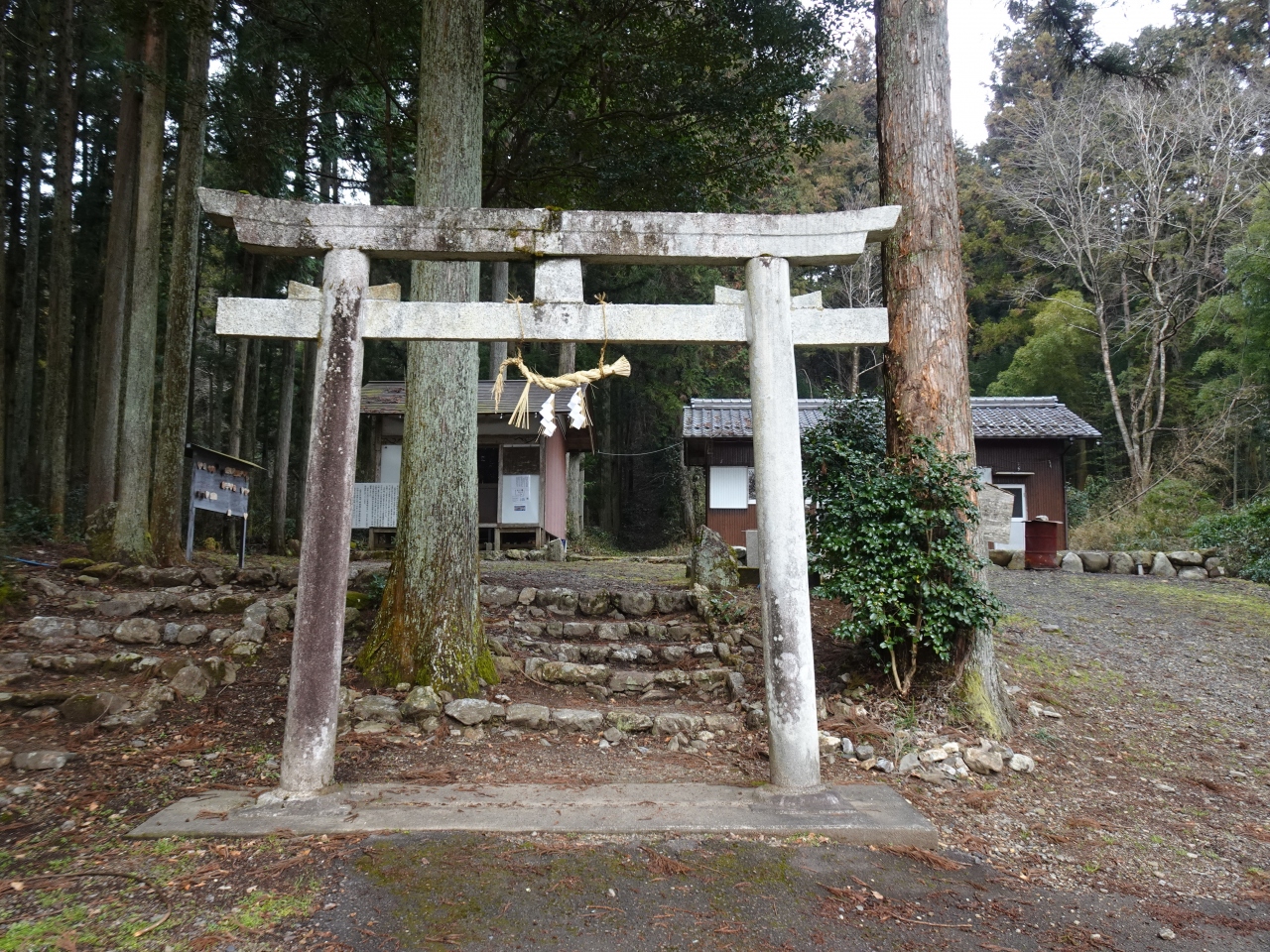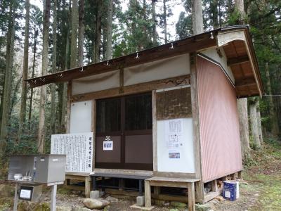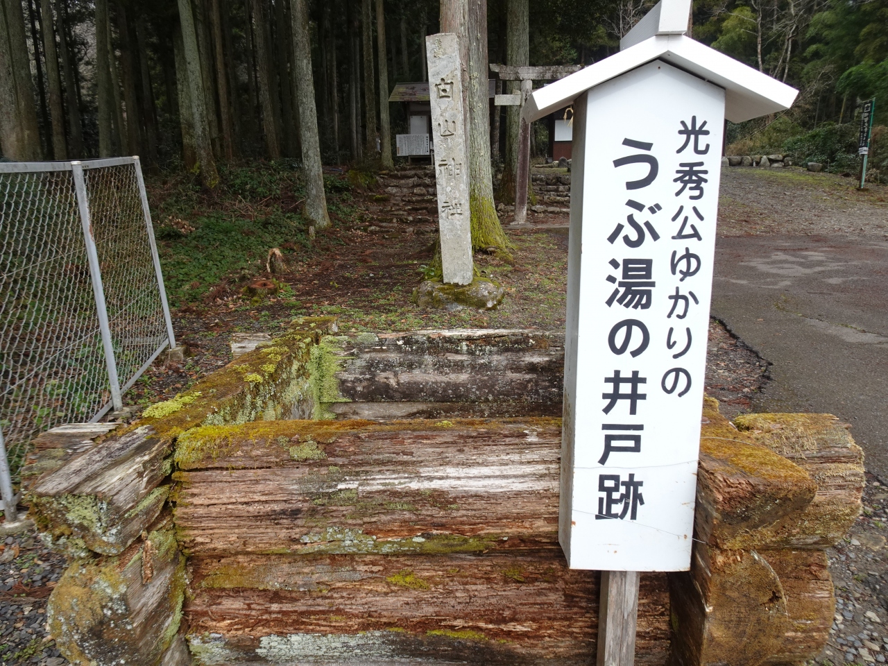 専用の駐車場に車を停め、少し歩いて行くと白山神社の鳥居が現れます。鳥居の先にある阿弥陀堂のガラス窓から覗くと明智光秀の肖像画を見ることができます。