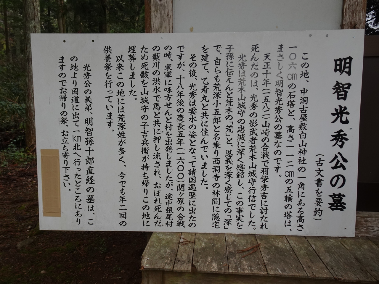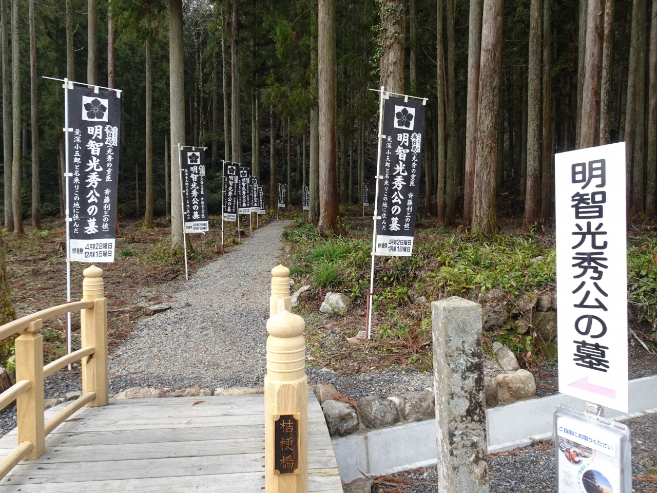 国道256号線を走行中「明智光秀公の墓」の案内板に誘われて立ち寄りました。