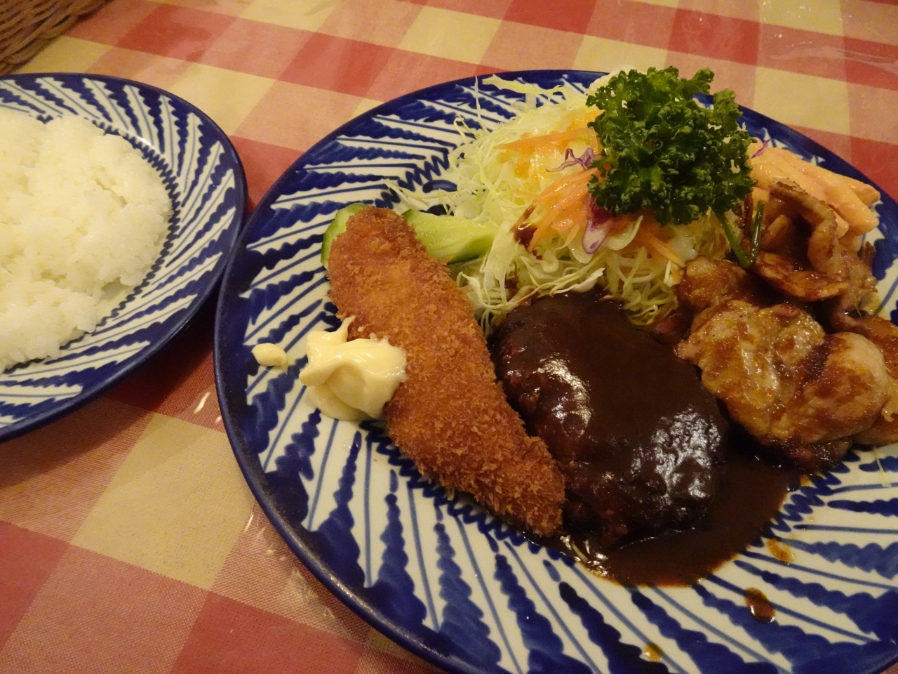 今回オーダーしたのはハンバーグに白身フライ、しょうが焼きが入ったセットメニュー。結構ボリュームがあり、それほど空腹ではなかったものの、食べるにつれて食欲が増すような味付けで満足できました。
