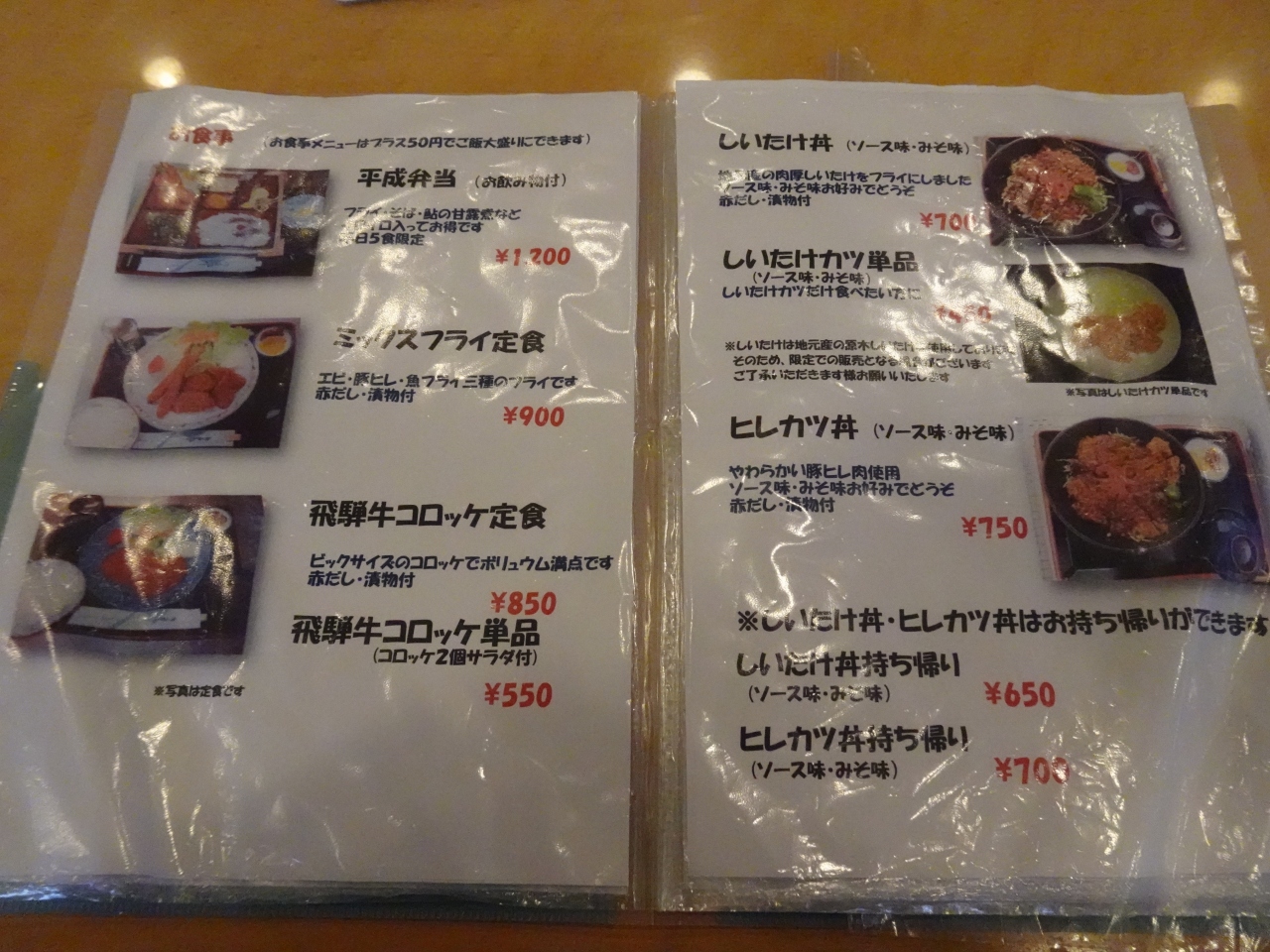 平日5食限定の「平成弁当」がまだ用意できるとのことで勧められましたが、極力軽めに済ませたかったので「しいたけ丼」(700円)を注文。