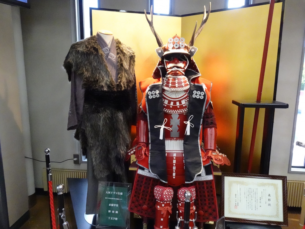 2階の観光案内所は真田一色。甲冑や真田幸村の銅像等の展示物を見ながら休憩コーナーでゆっくりできます。