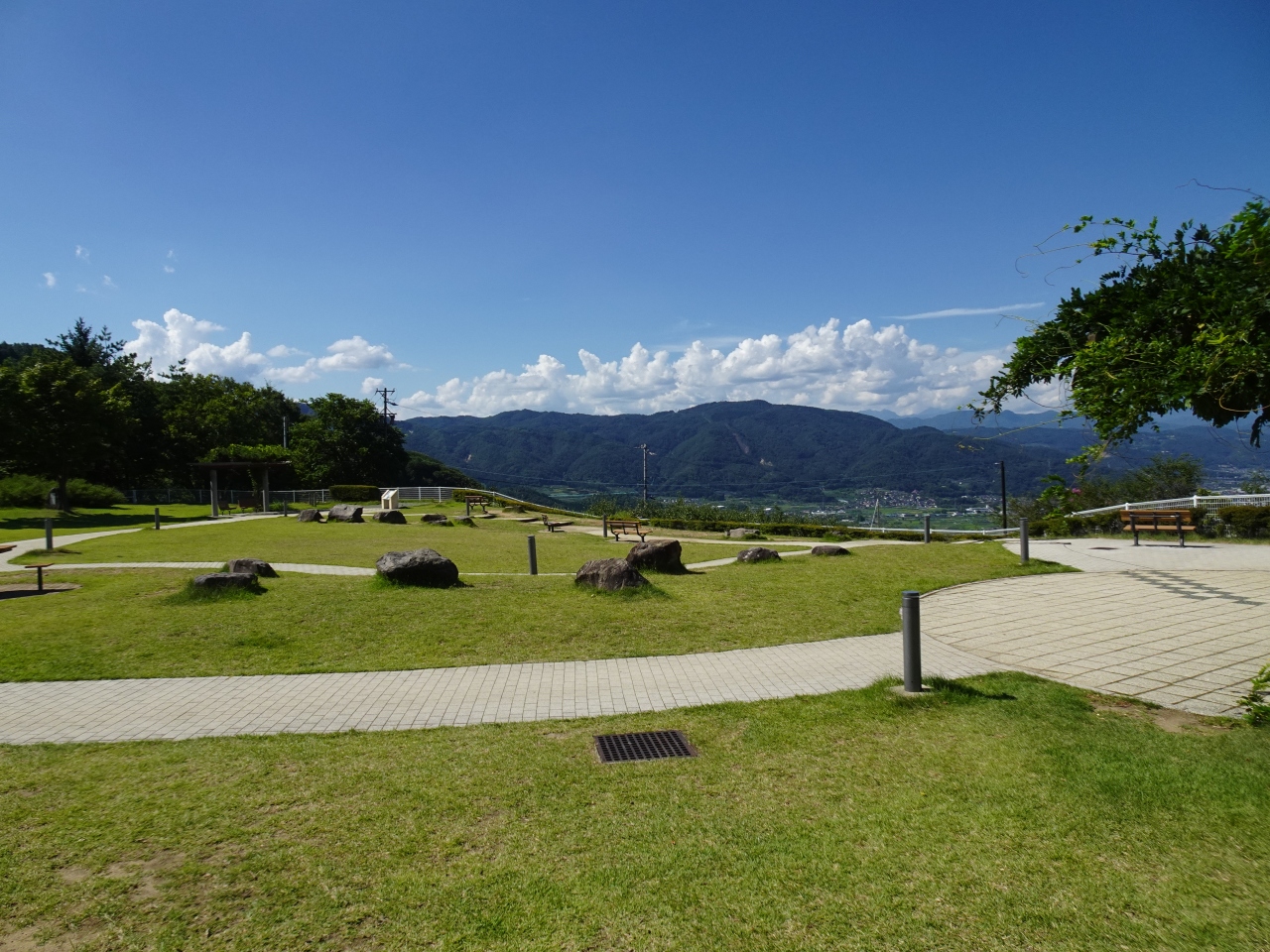 笛吹市の丘陵上にあるフルーツ狩り施設。周辺は大小さまざまな果樹園が連なり、名前の通り高台から山梨らしい風景を一望できます。