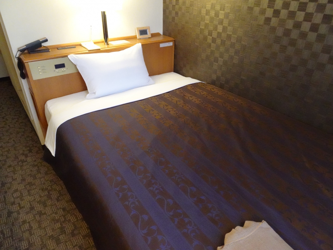 客室の広さや清潔感、ベッド幅などは必要十分。コンセントが多く、浴室のシャンプー・リンス類も満足でき、まずまず快適に過ごせます。