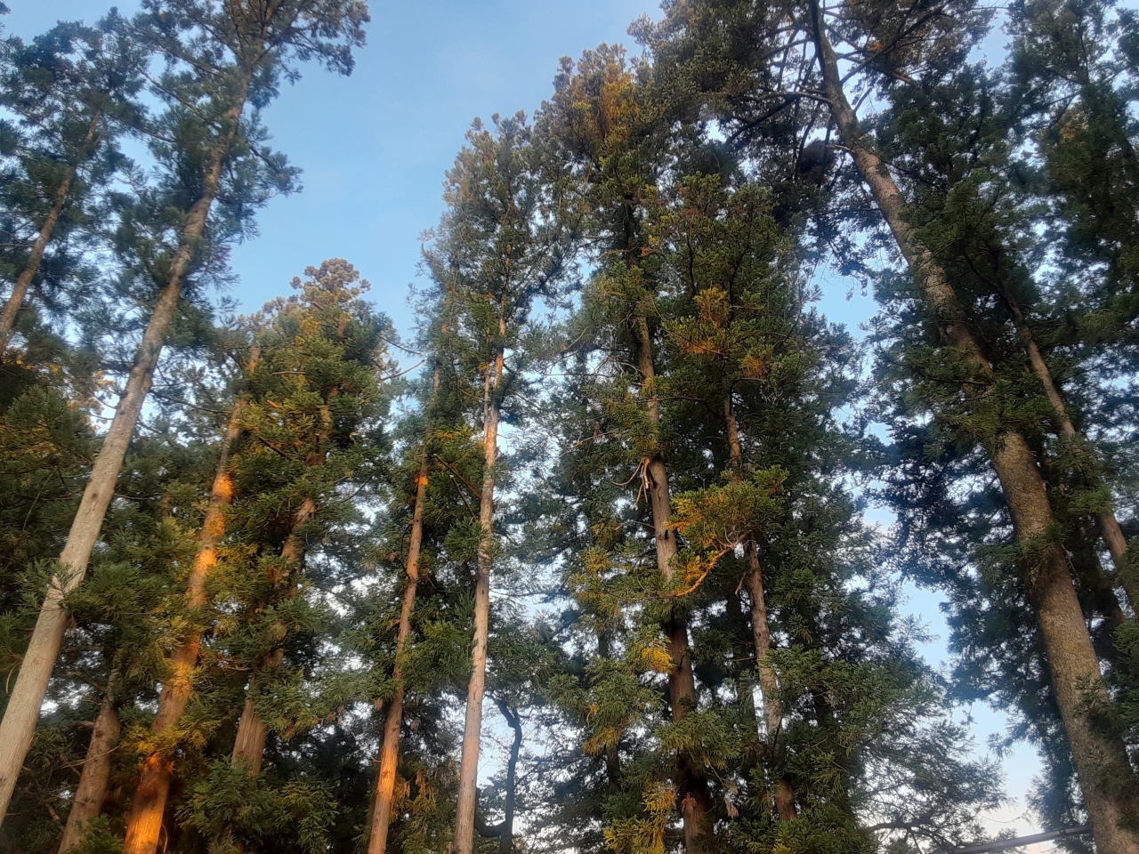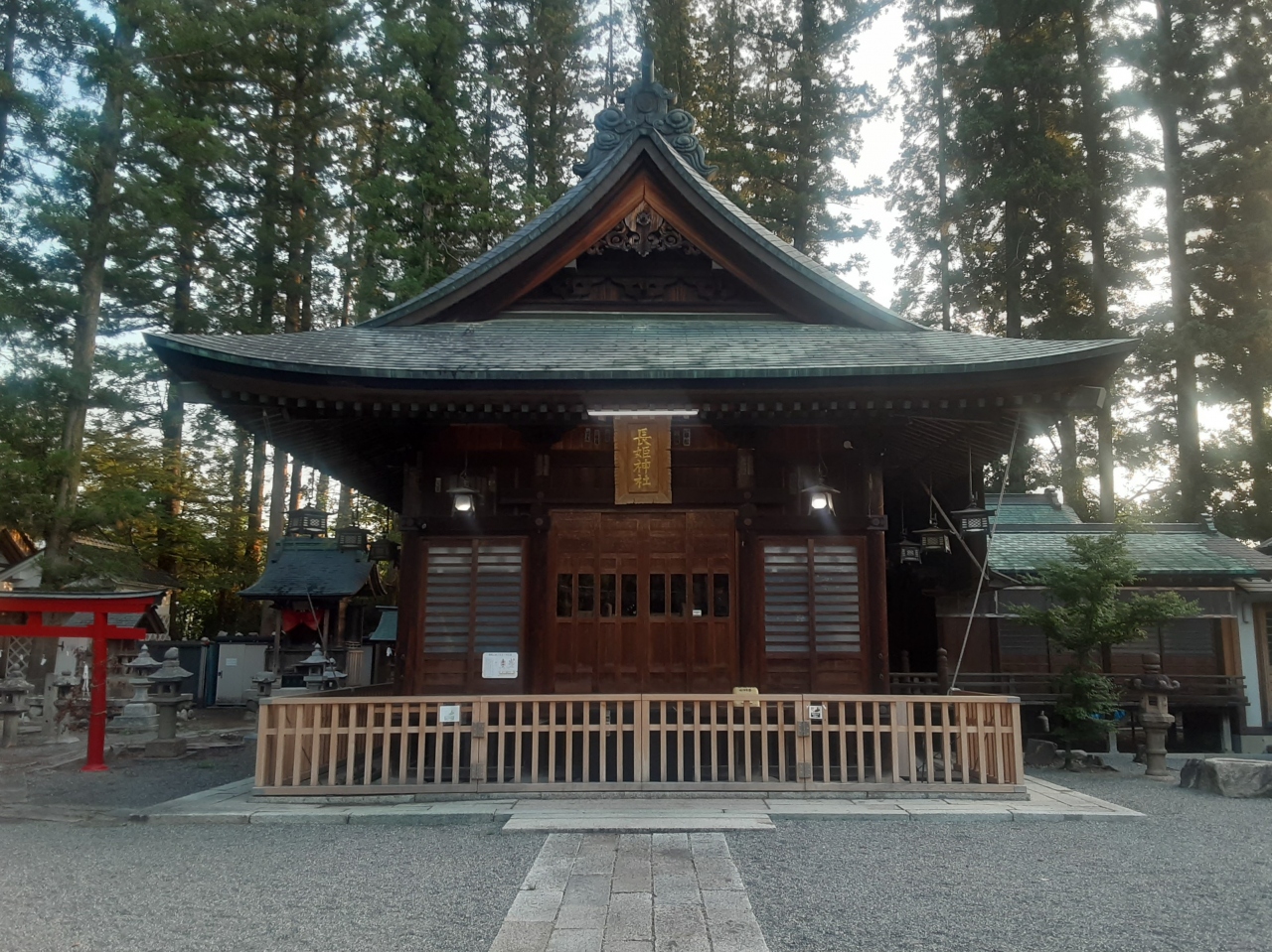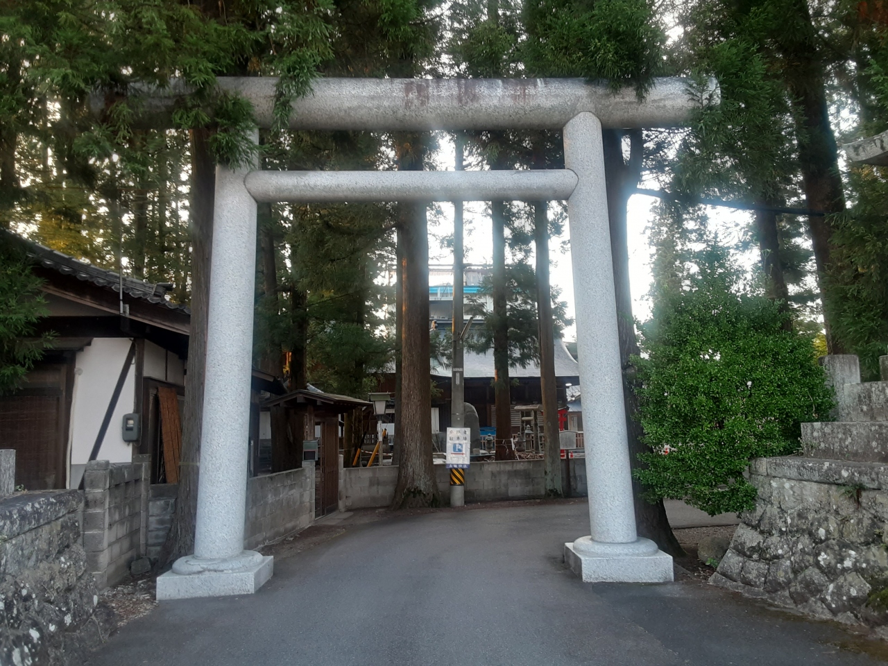飯田の高台のどんつきに位置し、朝の境内は他に訪れる人もなく静寂に包まれています。境内は直立する杉木立に覆われ神々しい雰囲気。参詣する当方の背筋も自然と伸びてきました。