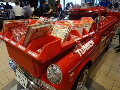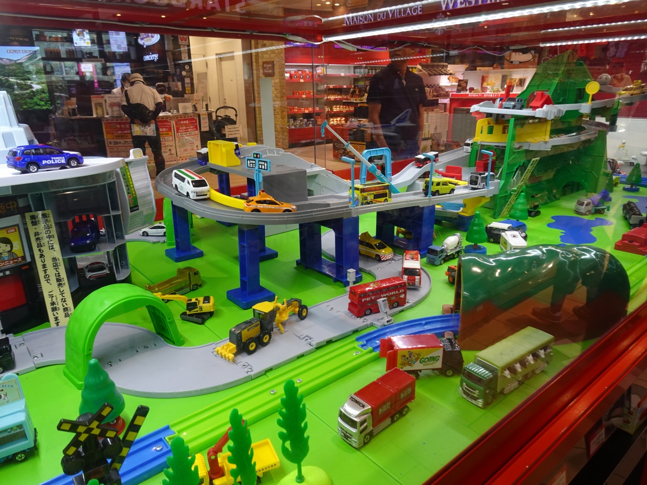 下り線側はレストランがありませんが、建物中央のフードコートには多くの飲食店が軒を連ねカバーしています。土産類等の物販も充実、一角にはトミカのコーナーがあり、ミニカーやプラレールなど玩具類も販売されていました。