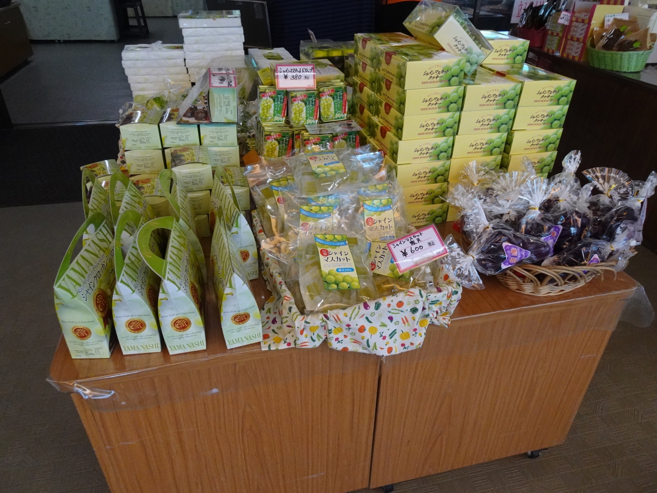 センターハウスの売店には、季節の果物はもちろん、地元の銘菓や地酒、甲州ワインなども並んでいます。- 旅行時期