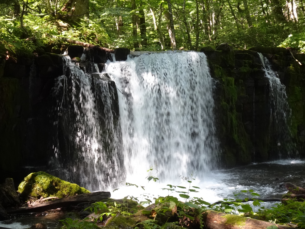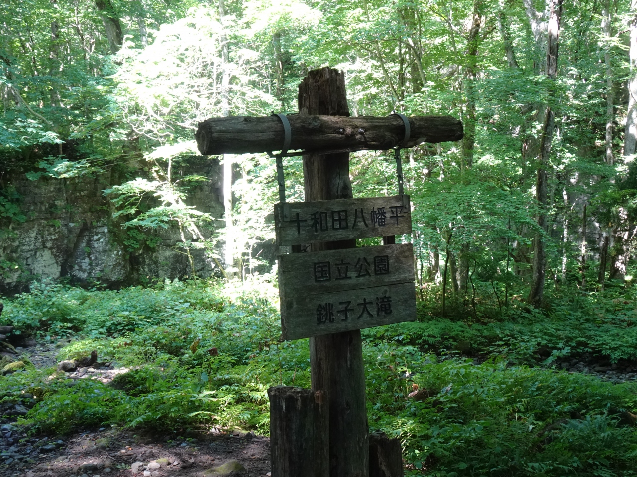 横幅約15m、落差7mあるとのことですが、水流がいつもより少なく実際にはもっと小さく見えました。それでもこの高さが魚の遡上を阻み、十和田湖はかつて魚が生息しなかったそうで地形学や生物学の面でも意義の大きさが感じられます。