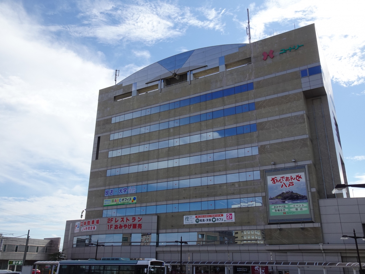 JR八戸駅の東口前にある複合ビル「ユートリー」。駅前では最も高層で目立ちます。