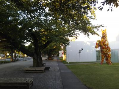 両側は桜と松並木が続き、十和田市現代美術館のアートや馬のオブジェなどが所々見られ、桜の開花時期でなくても散策が気持ち良い道です。
