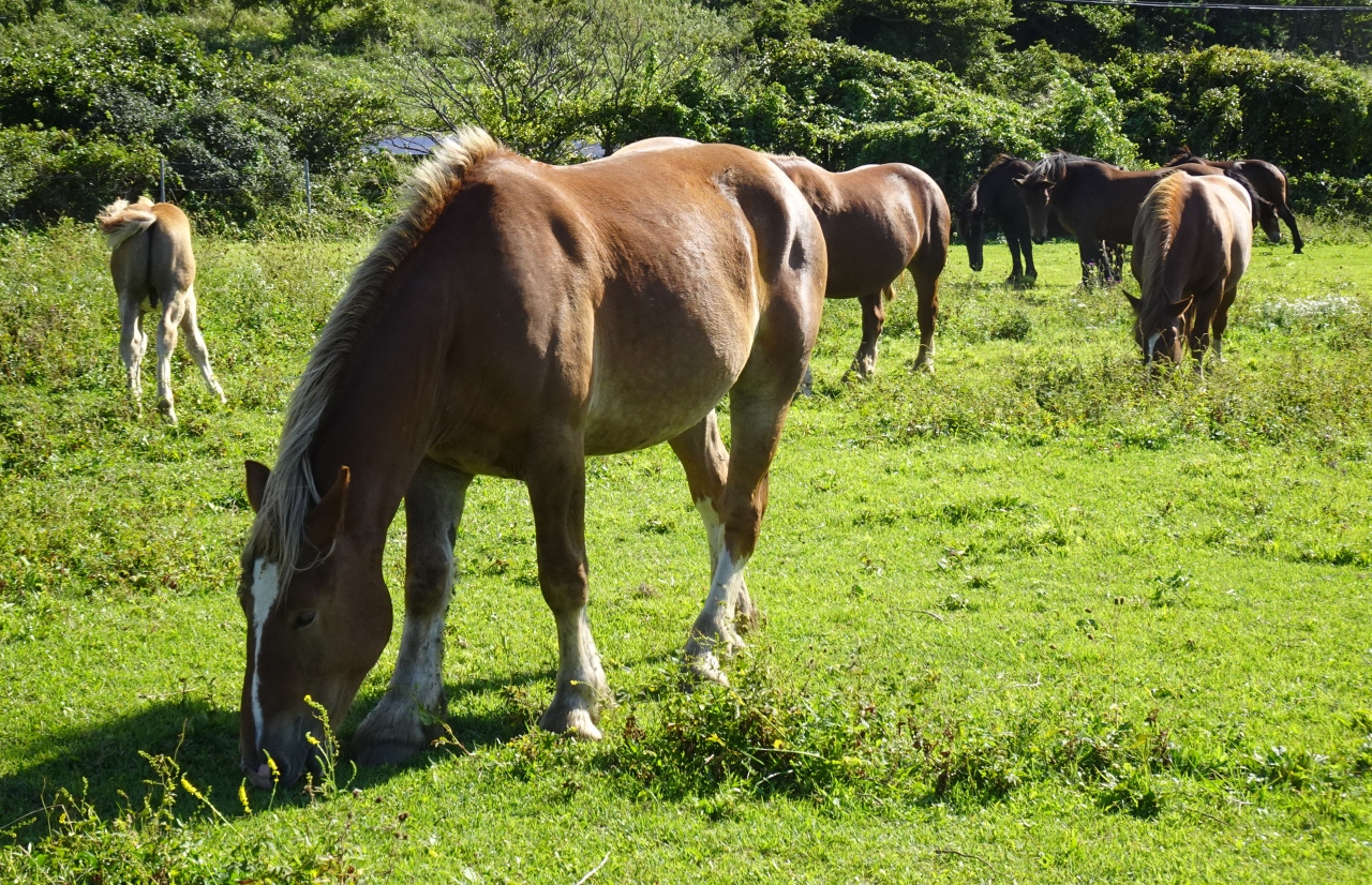 本州最果ての地「尻屋崎」に放牧される馬たち。