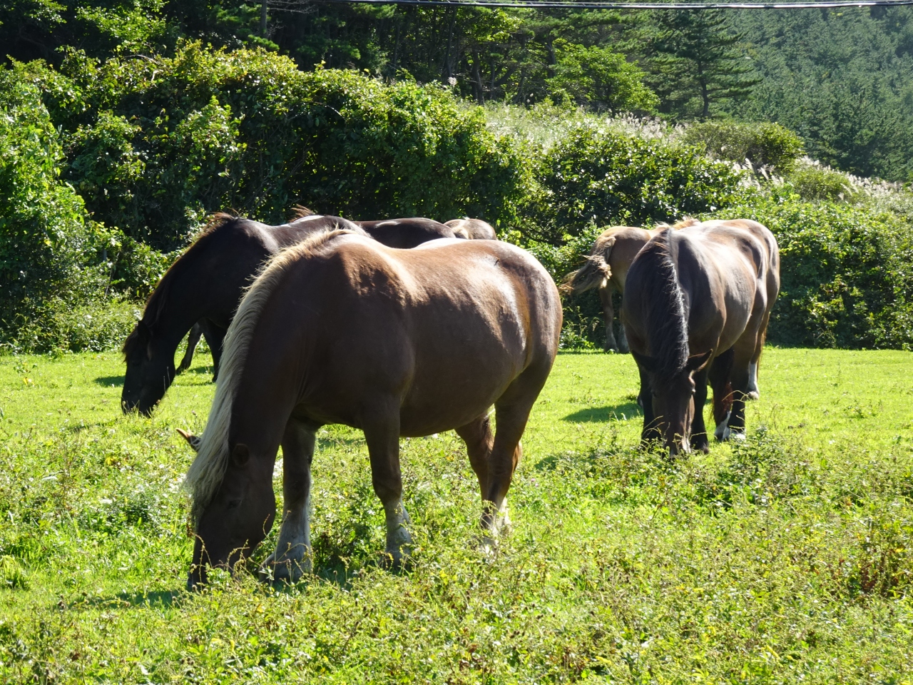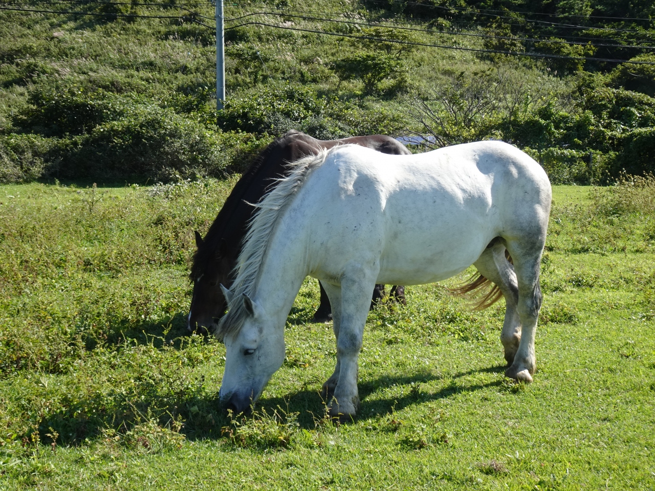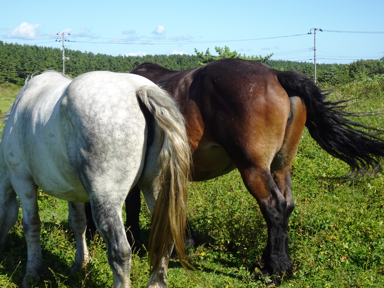 観光案内では青い海を背景に佇む馬群の写真を眼にしますが、実際に尻屋崎を訪れてみると岬周辺の草地には馬たちの乾燥した落し物があるのみ。