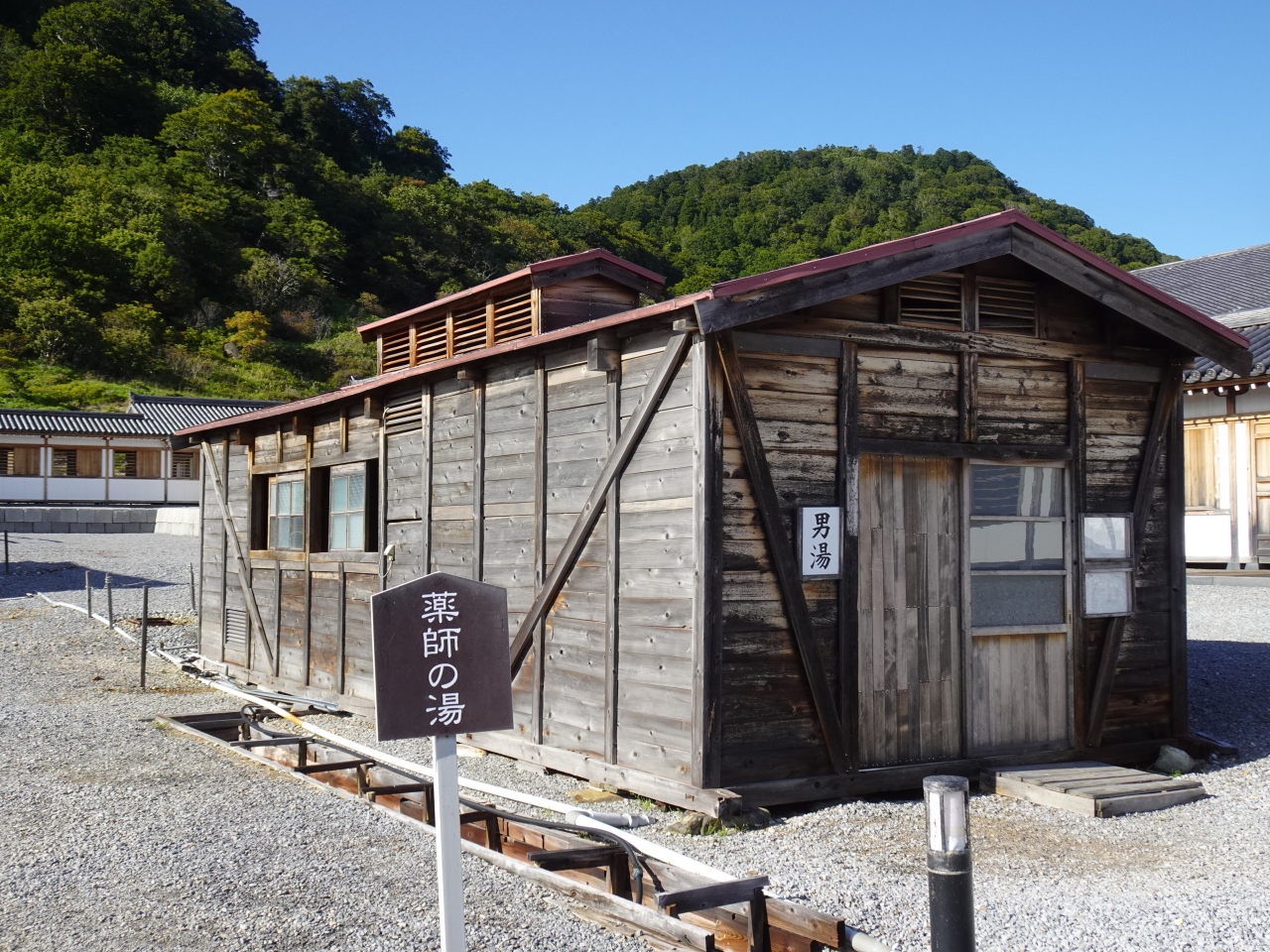 山門を潜り参道を進むと両側に温泉小屋があるのが一つのポイント。