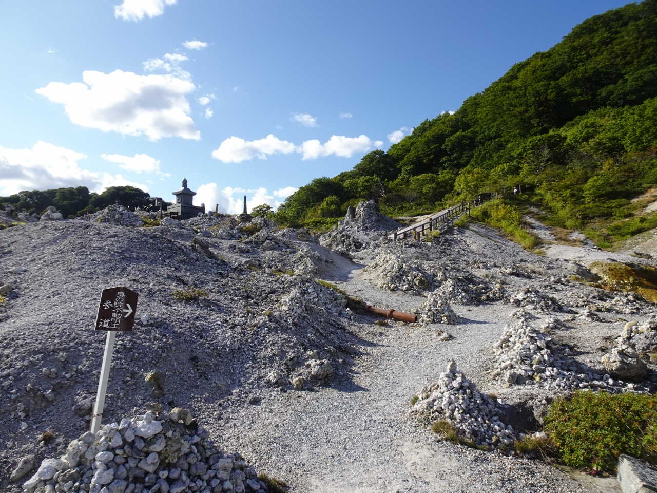 また参道の突き当りにある地蔵殿の西側が最大の見どころ。立ち込める硫黄の臭いと荒涼とした岩場が広がり独特の世界観が楽しめます。そして極楽浜という砂浜に出ると景色が一変。それまでの地獄から極楽に転じるような穏やかな風景となり、一つのスポットで色々な表情が見られるのは魅力です。