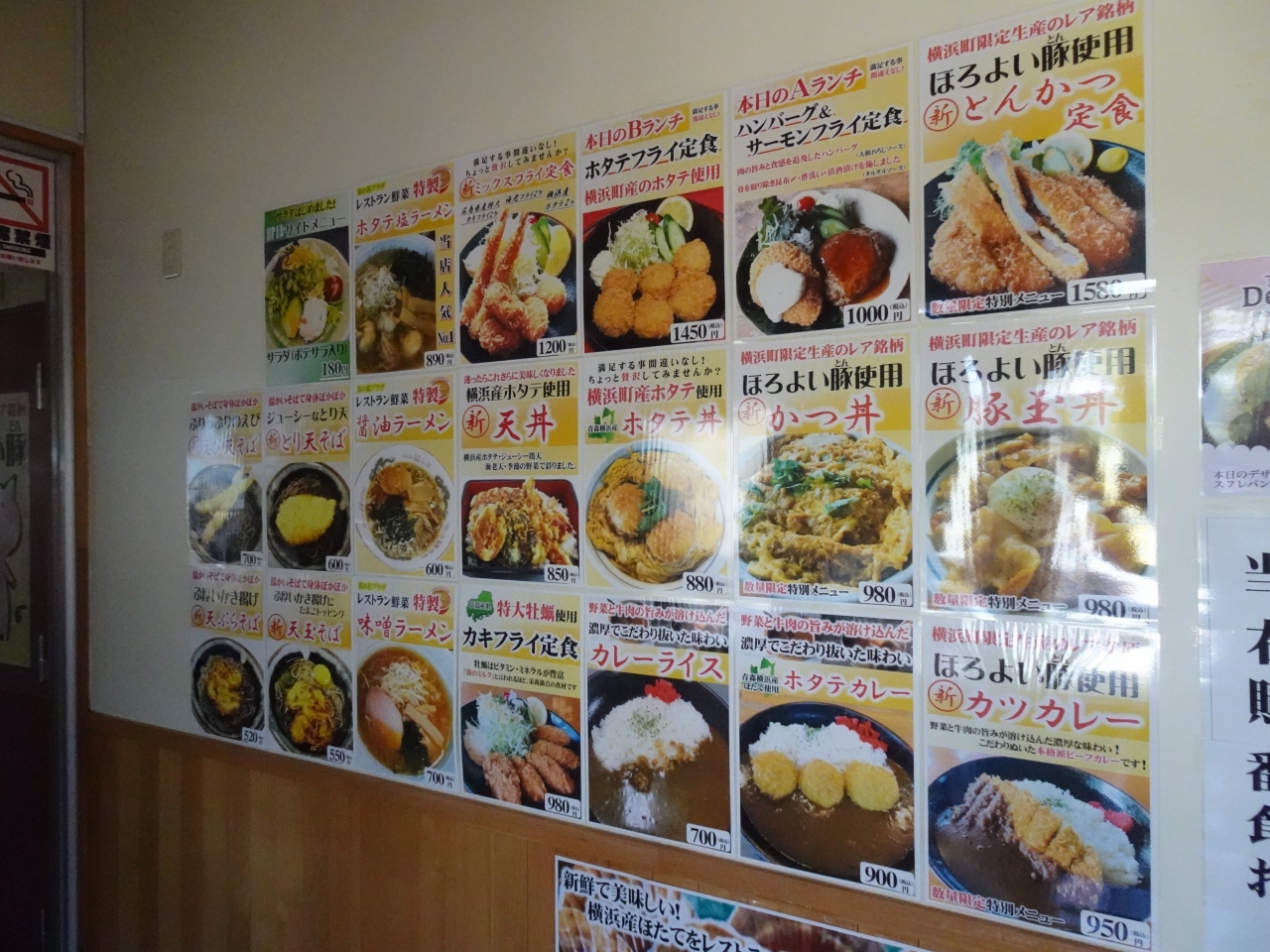 横浜町はホタテの養殖がさかんでフライに丼、カレーにラーメンと各種ホタテ料理が食べられます。とんかつにもほろよい豚が使用されるなど地元の食材が味わえるのも特徴。