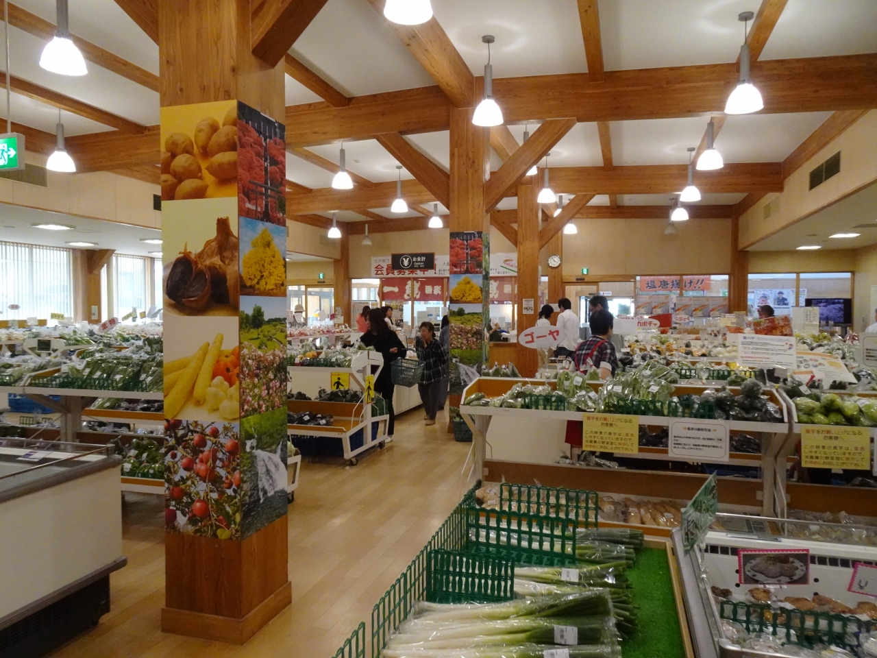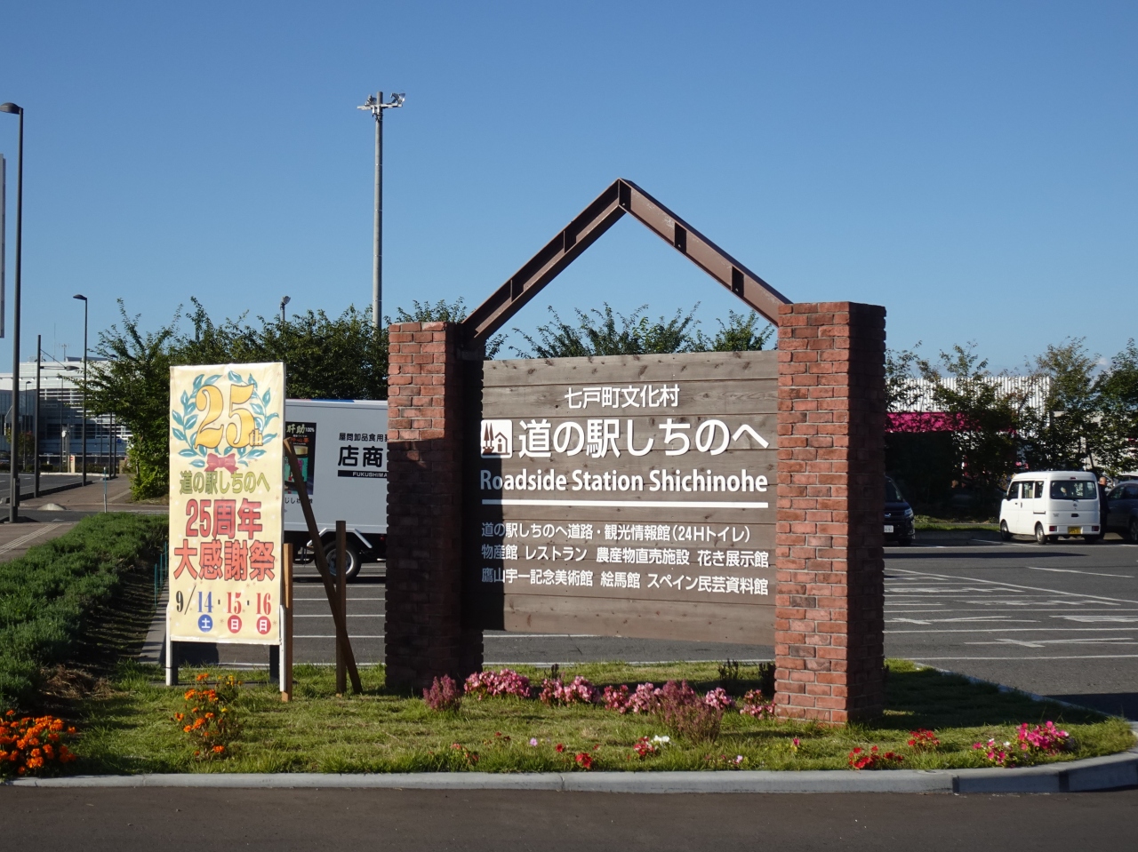 東北新幹線の七戸十和田駅に隣接、施設内には美術館もあるなど規模は大きめ。また青森県の道の駅では最初に開業していますが、リニューアルしているようで古さを感じず、施設は明るくてきれいです。直売所には安い果物や野菜が沢山並んでいました。