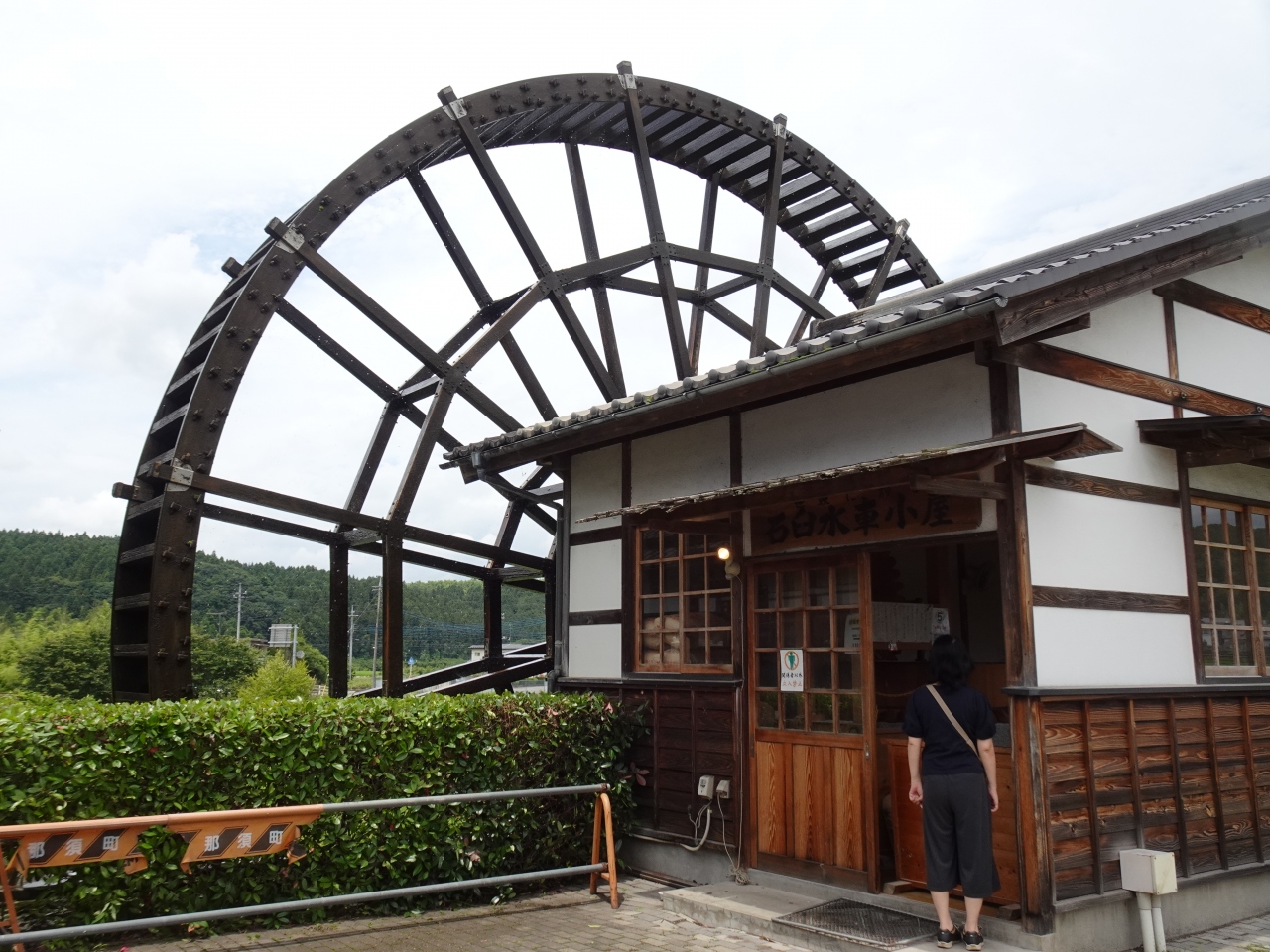 この道の駅の人気は蕎麦。巨大な水車が石臼でそば粉を挽いて作っているとのことで、蕎麦処には行列ができていました。2台ある水車の大きい方は直径が12メートルもあり、近くで見るとなかなかの迫力です。
