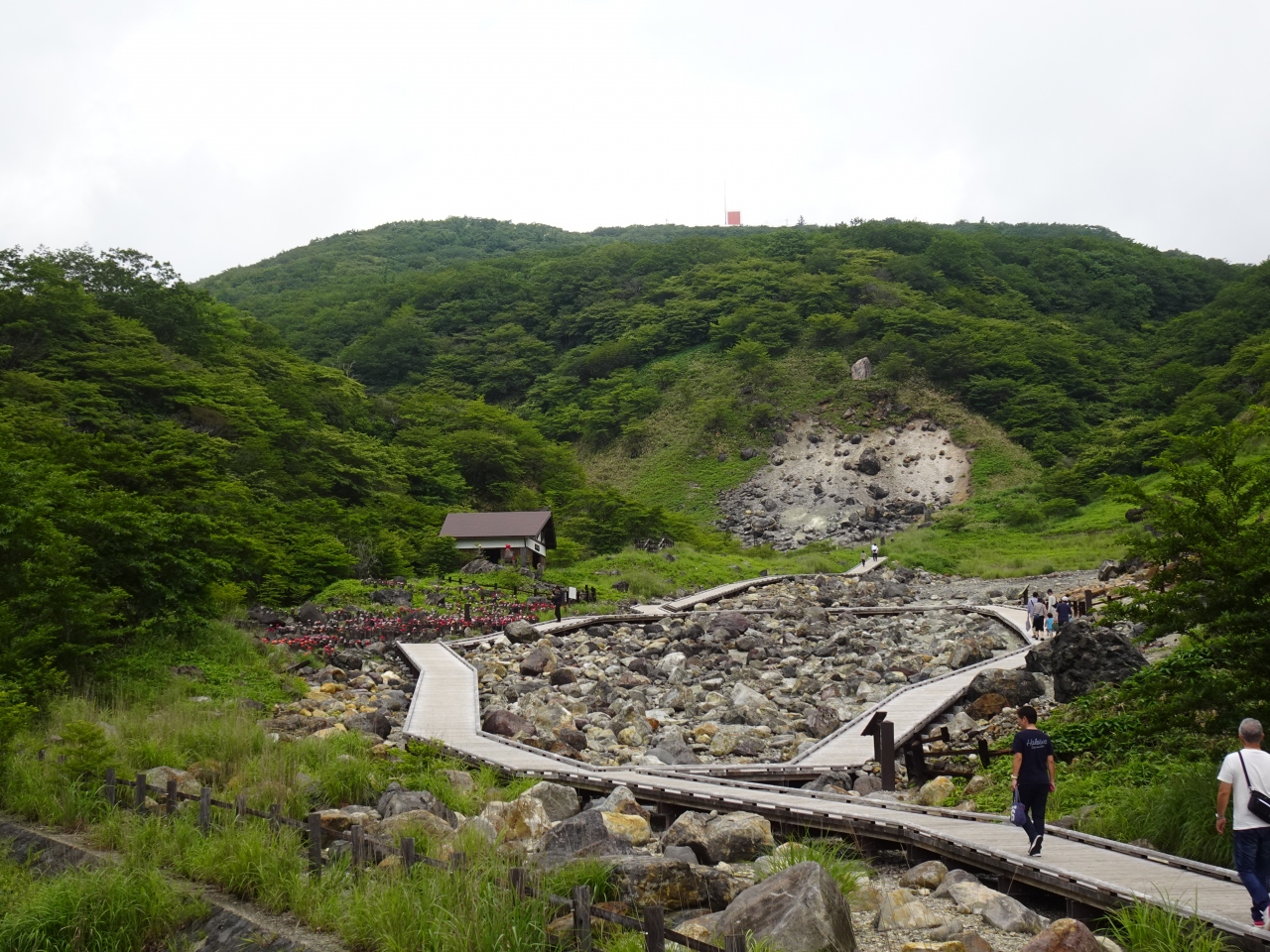 駐車場で車を降りると硫黄の臭いが立ち込めます。登別の地獄谷を小さくしたような雰囲気。