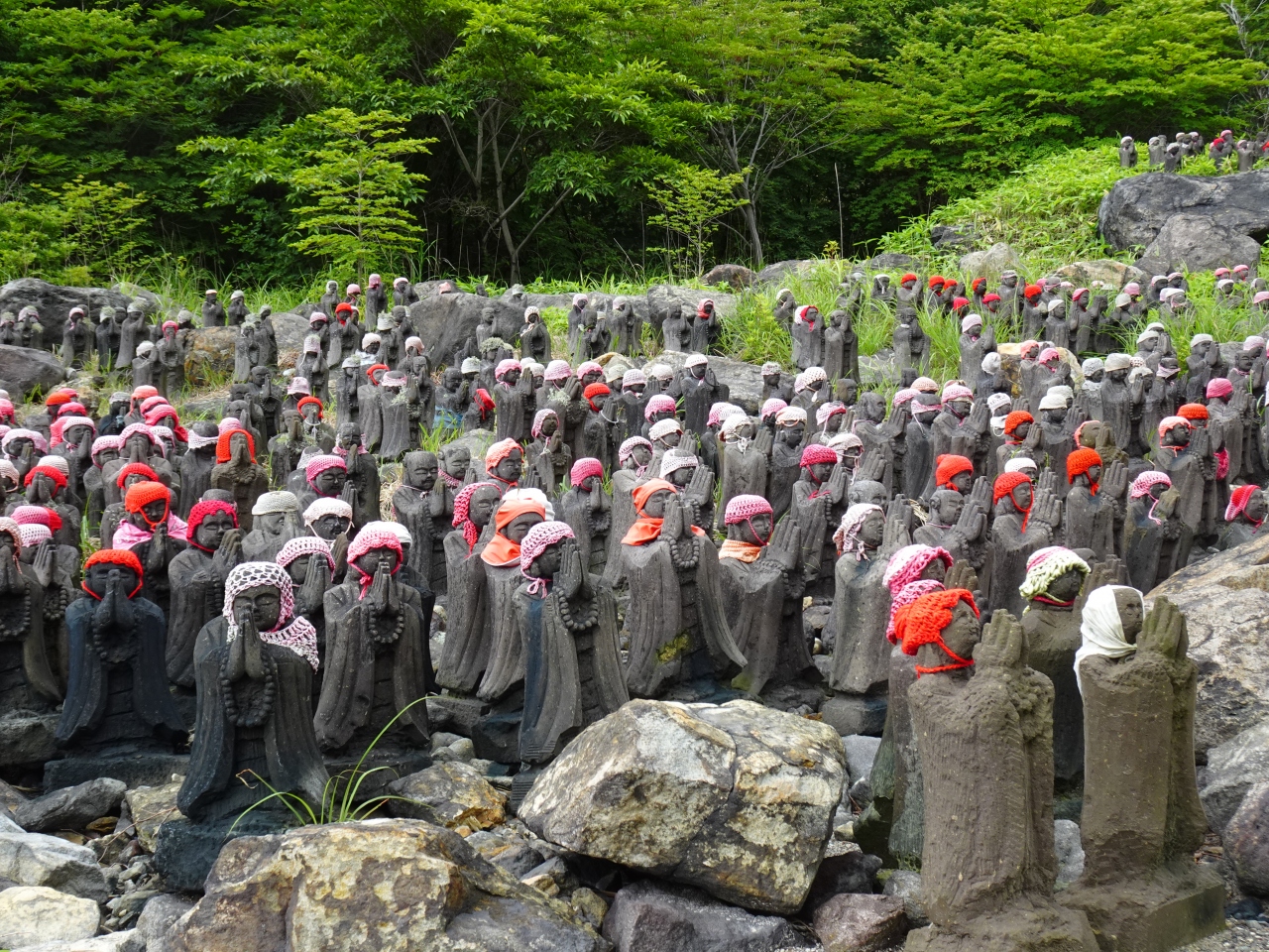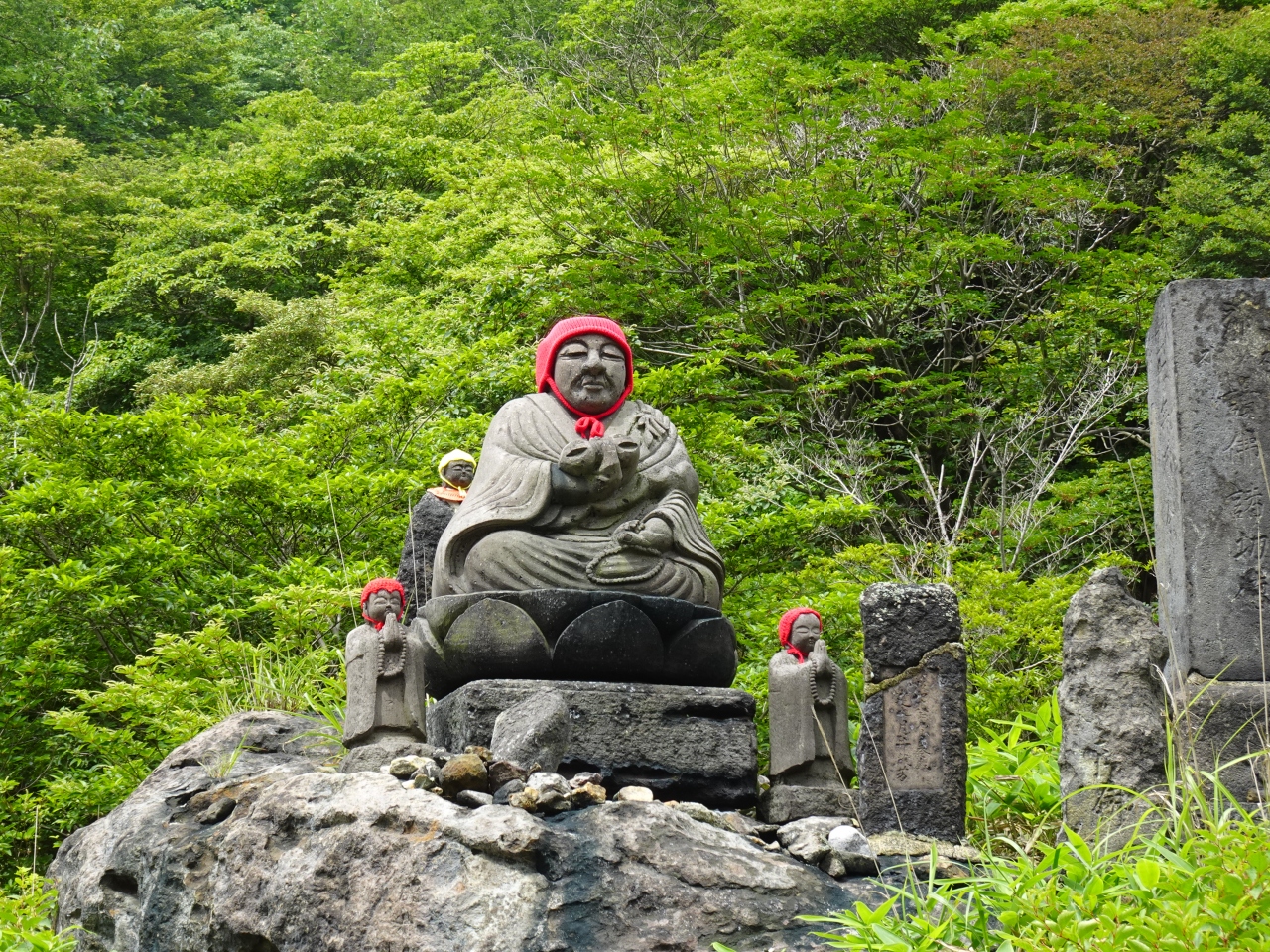 歩道は整備され、ごつごつした岩や千体地蔵などを見ながら坂道を上り一番奥にあるのが「殺生石」です。