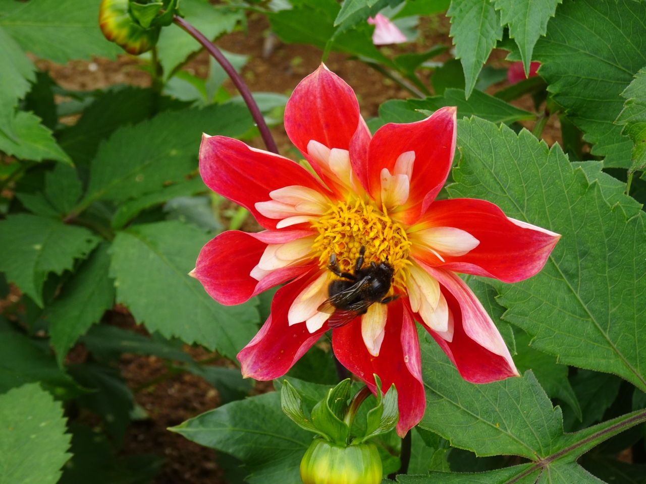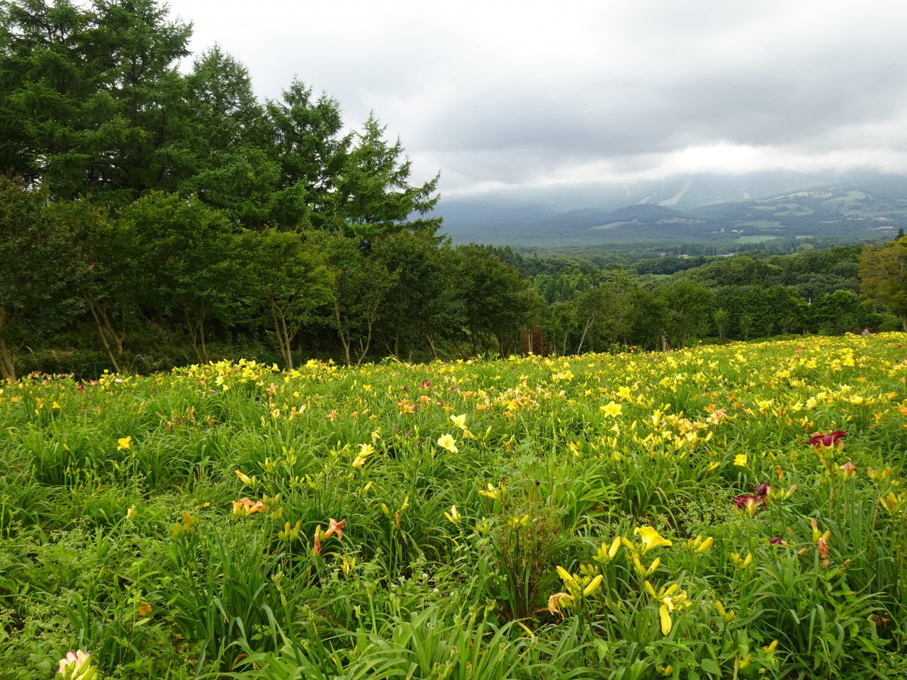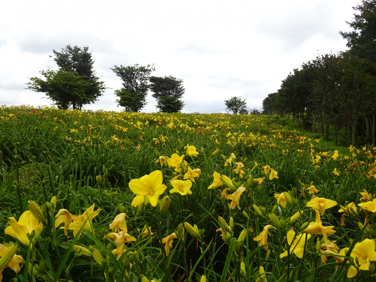 それでもバラやダリアはわずかながらも見ることができ、また斜面の上の方ではヘメロカリスの花々が見ごろを迎え黄色の世界を演出していました。
