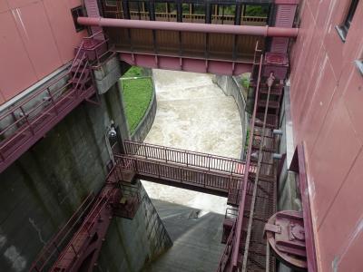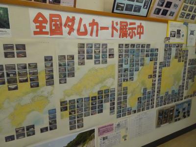 1階のダム模型は比較的大型のもの。実際の水を使い上流から下流へとダムの役割を分かりやすく説明しています。また2階には3Dメガネを通した立体シアターもあり。階段踊り場には全国のダムカード展示が日本地図上に記されていますが、実際のカードではなくコピーが用いられているのはやや残念。