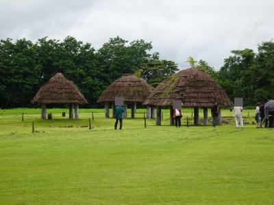 建物の反対側には広場があって芝生の緑が鮮やか。温泉のじゃぶじゃぶ池や広場が見渡せる足湯など楽しめる要素が揃っていました。- 旅行時期