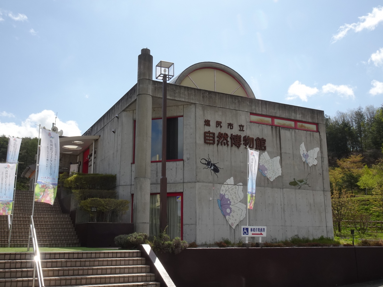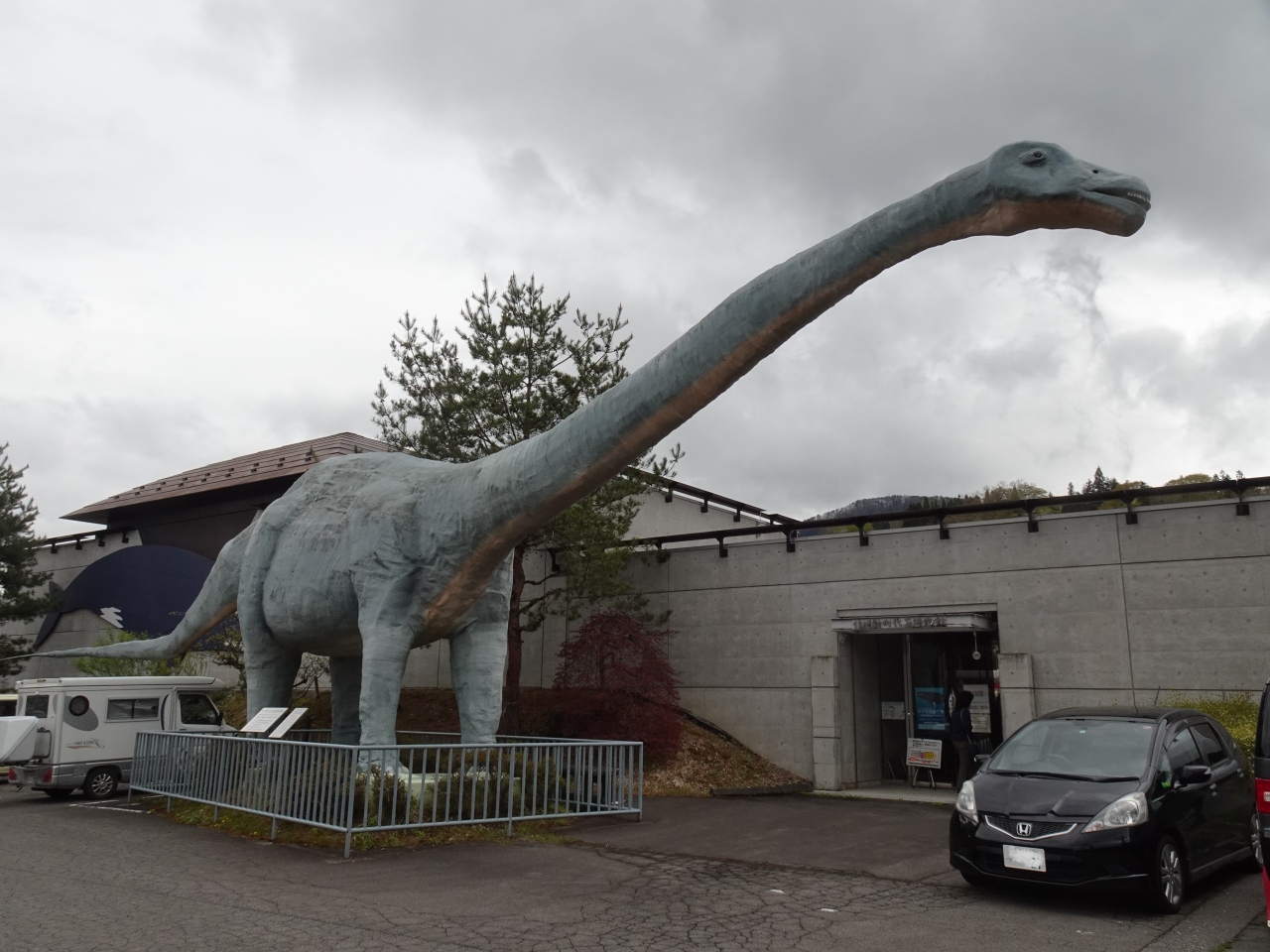 信州新町の中心部にある博物館。駐車場には恐竜ディプロドクスの実物大の復元模型(体長32m)があり眼を惹かれます。
