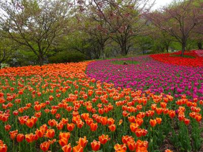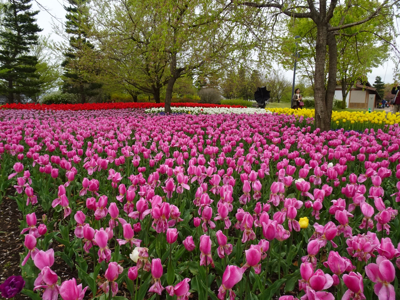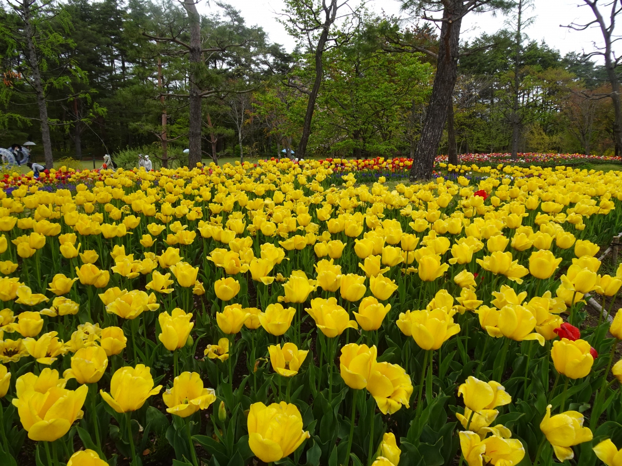 お目当ては見ごろのチューリップ。入口から比較的近く、それほど歩かずに済む場所にあります。公園の奥の方まで広がり、様々な種類・色の花を見ることができ、チューリップ鑑賞だけで十分楽しめました。