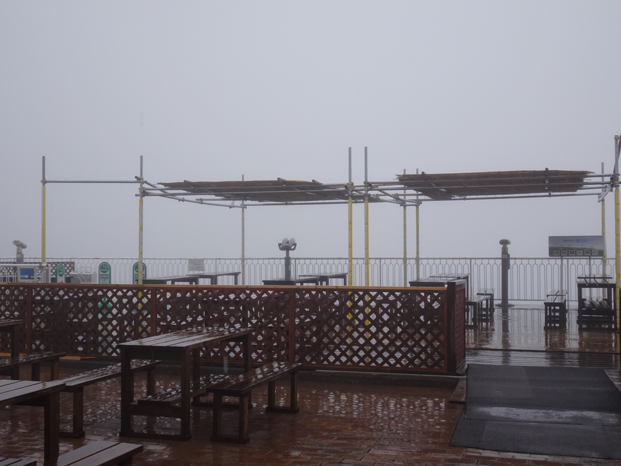 標高2000mの地点にあり、天気が良ければ広大なパノラマが臨めるのでしょうが、訪れた日は雨に霧が加わり展望台からは何も見えません。