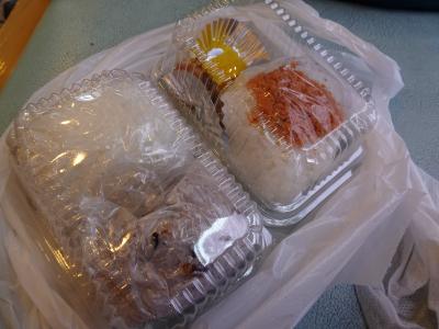 昼食を取ろうと駅内にある食事処「かあさんのおむすびの店」立ち寄りましたが、昼の時間と重なり中は満席。そこで名物のおにぎりをテイクアウトにしてもらい、隣接する情報交流室の中で座って食べました。