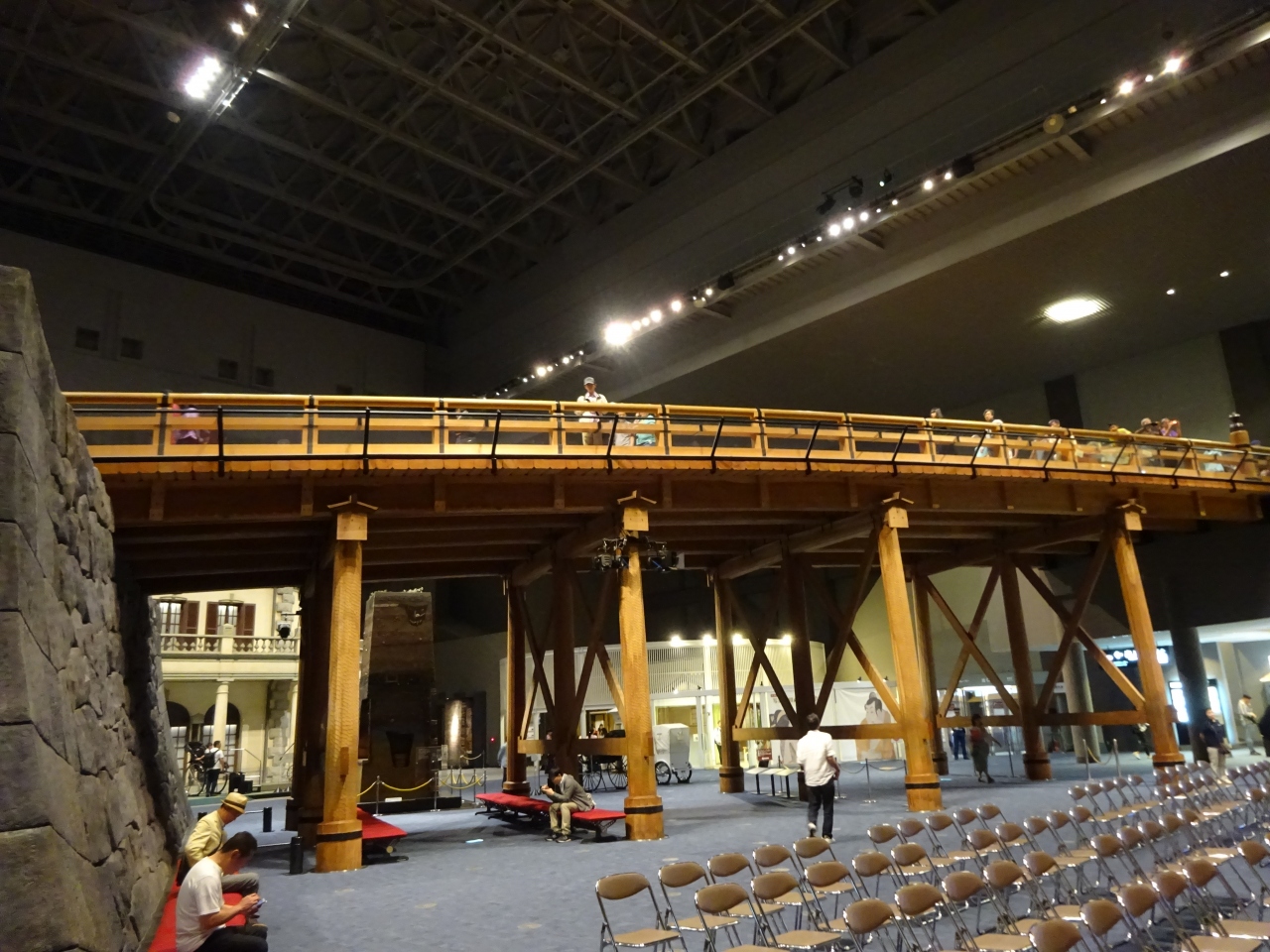 6階から入場すると木製の「日本橋」に眼を惹かれます。羽田国際線ターミナルにある「はねだ日本橋」に比べ立派で両側から5階の展示ゾーン全体を一望。橋を渡ると江戸幕府に関する解説や江戸城ほか幾つかの模型の展示がありますが、この辺りは人が集中して少し見づらいです。