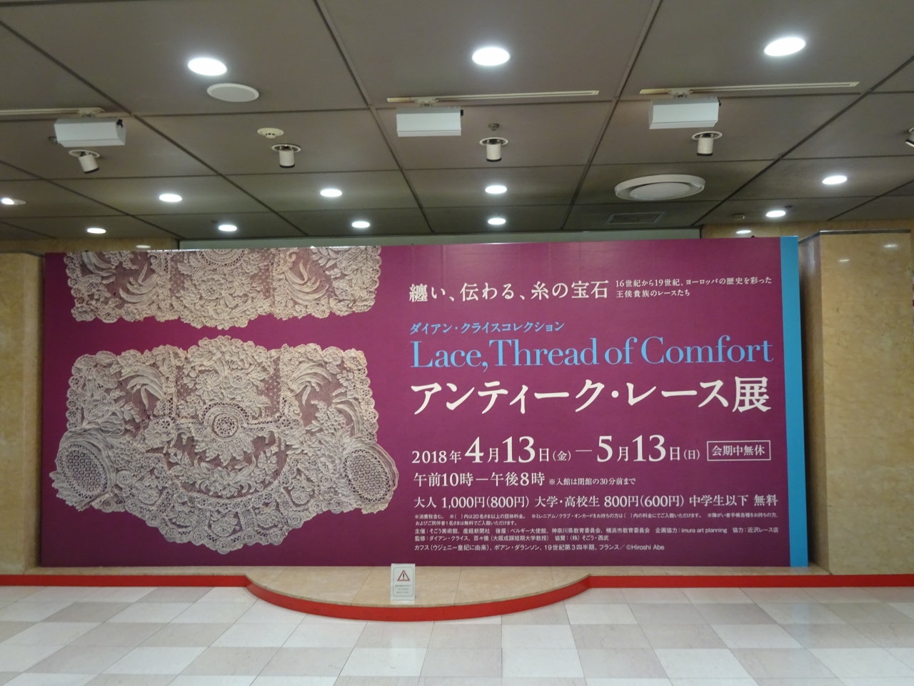この日に開催されていたのは「アンティーク・レース展」と入館する前から嫌な予感。16世紀から19世紀の欧州王侯貴族で愛用されたレースの作品群が展示され、女性の観覧客中心に皆さん熱心に観覧されている。