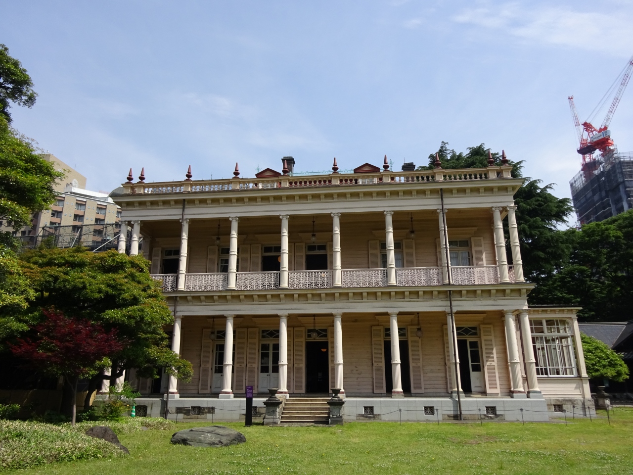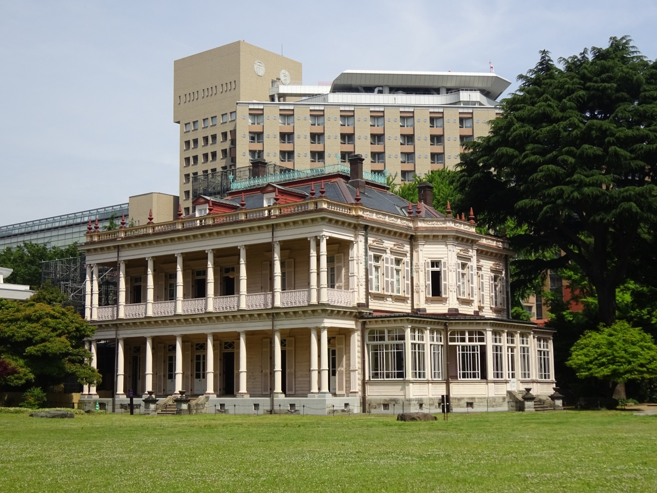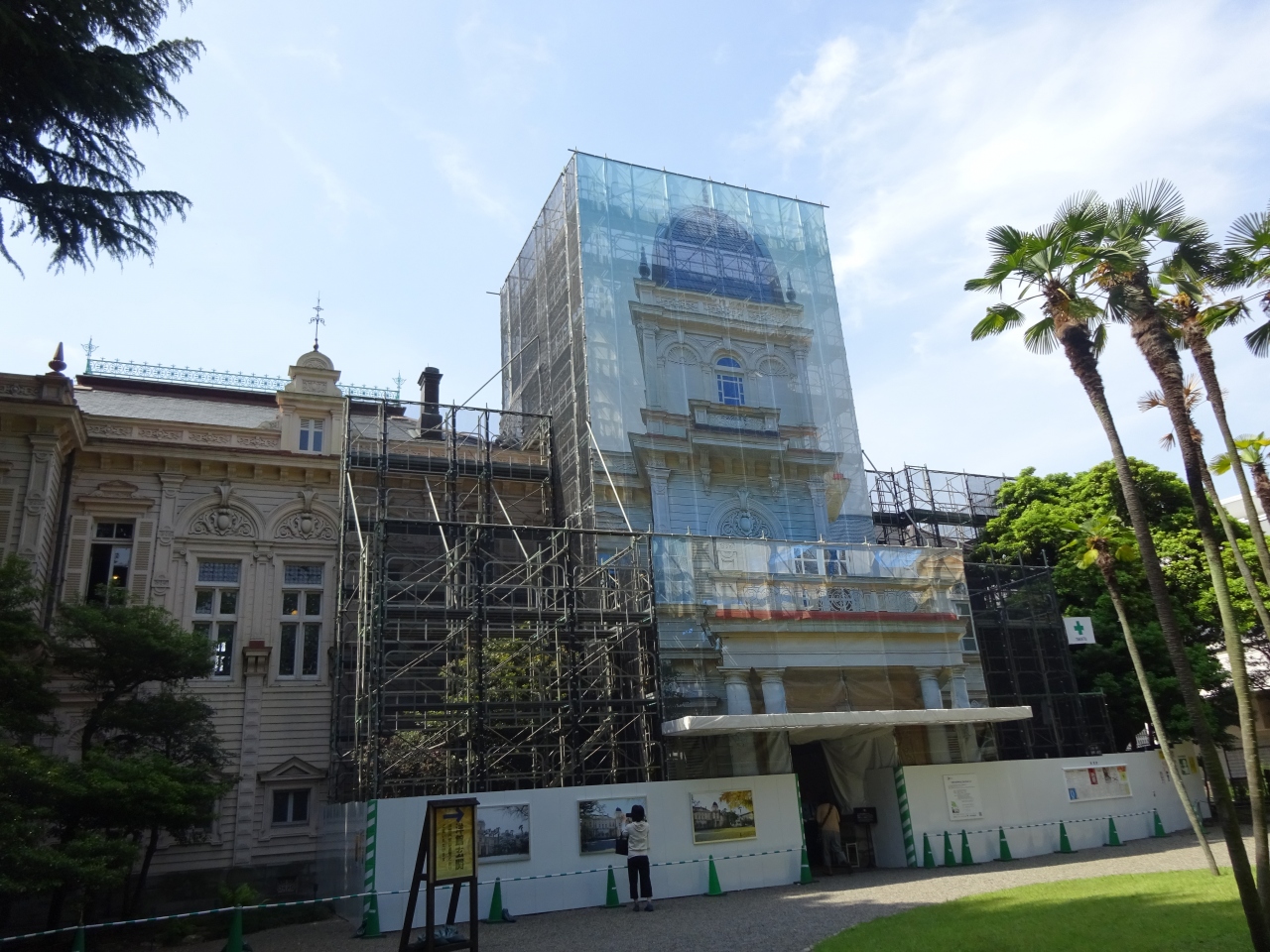 訪れた日は洋館の外装工事のため前面がカバーに覆われ良く見えませんでしたが、工事期間中限定のポストカードを頂きました。- 旅行時期
