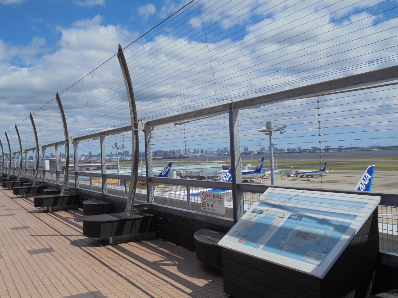 屋外の展望デッキは写真撮影には良いでしょうが、当日は風が強く暫く外にいるのは辛い。半面屋内にある「FLIGHT DECK TOKYO」は結構広く、また天候に左右されることなく静かに眺望を楽しめます。(大きい窓ガラスは外を見やすく、窓下の台も荷物が置けて便利)