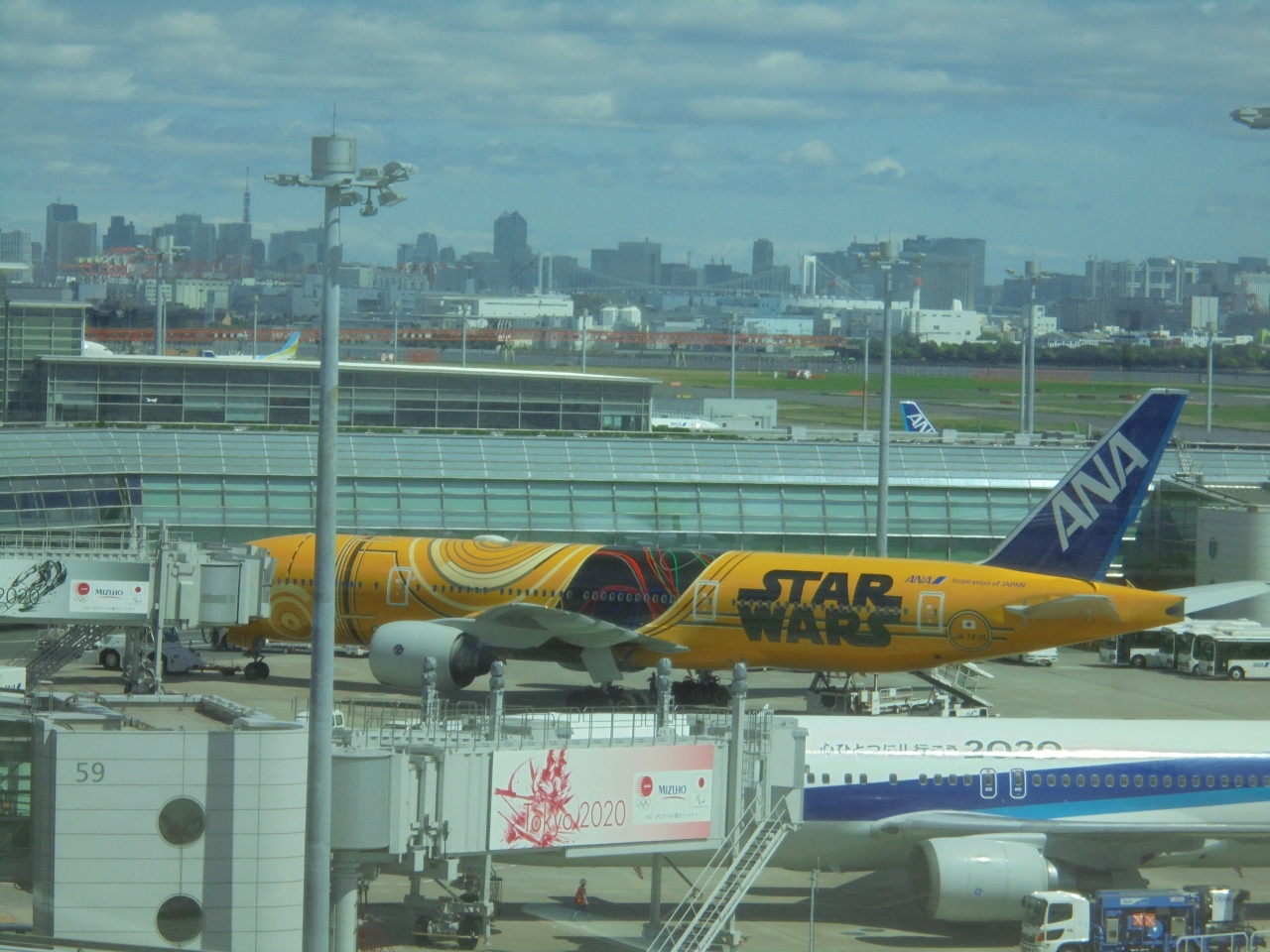 - 飛行機のほか、東京湾沿いの建物なども見られる