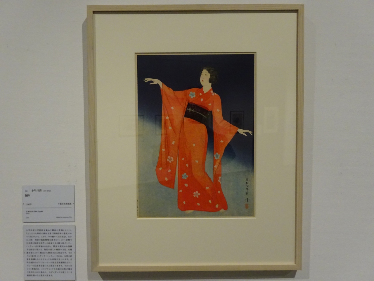 作品は大正から昭和初期の木版画が中心。江戸時代の浮世絵版画を意識しつつ20世紀前半の風俗や風景などが描かれた作品が、「女性」「風景」「役者」などジャンル毎に多数展示されています。元々浮世絵は大衆向けに発展しただけに、今回の展示はいずれも親しみやすい内容でした。