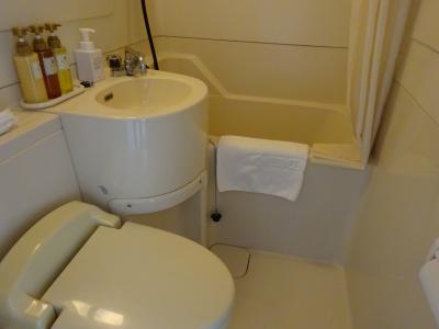 大浴場があるため部屋にはシャワールームしかないもののこれは割り切り。その代わり洗面所とトイレが独立しているため使いやすい。歯ブラシも決して粗悪なものではなく、毛の量が多めで歯磨き後に出血しなかった。