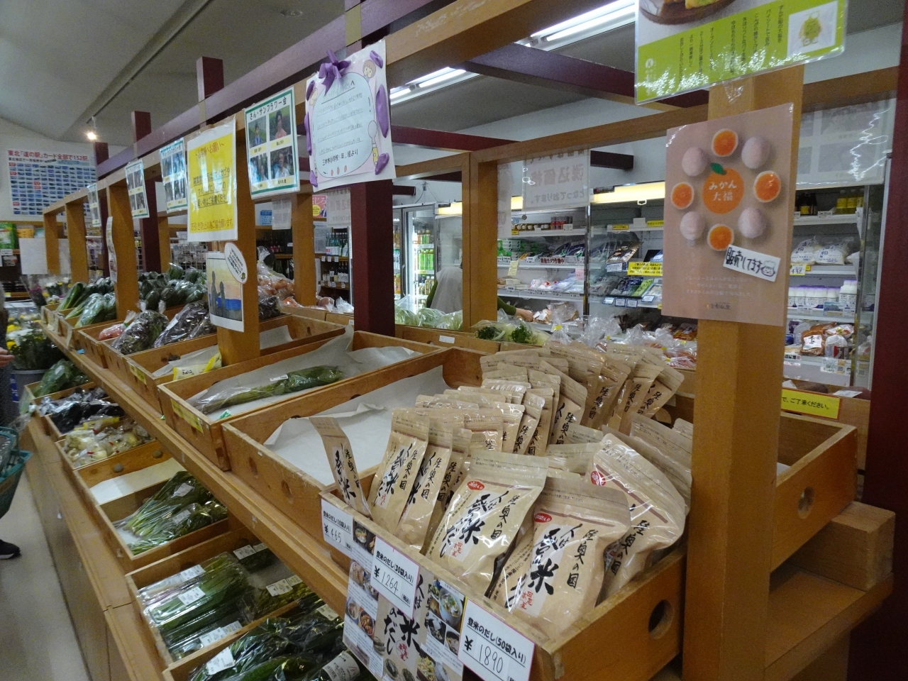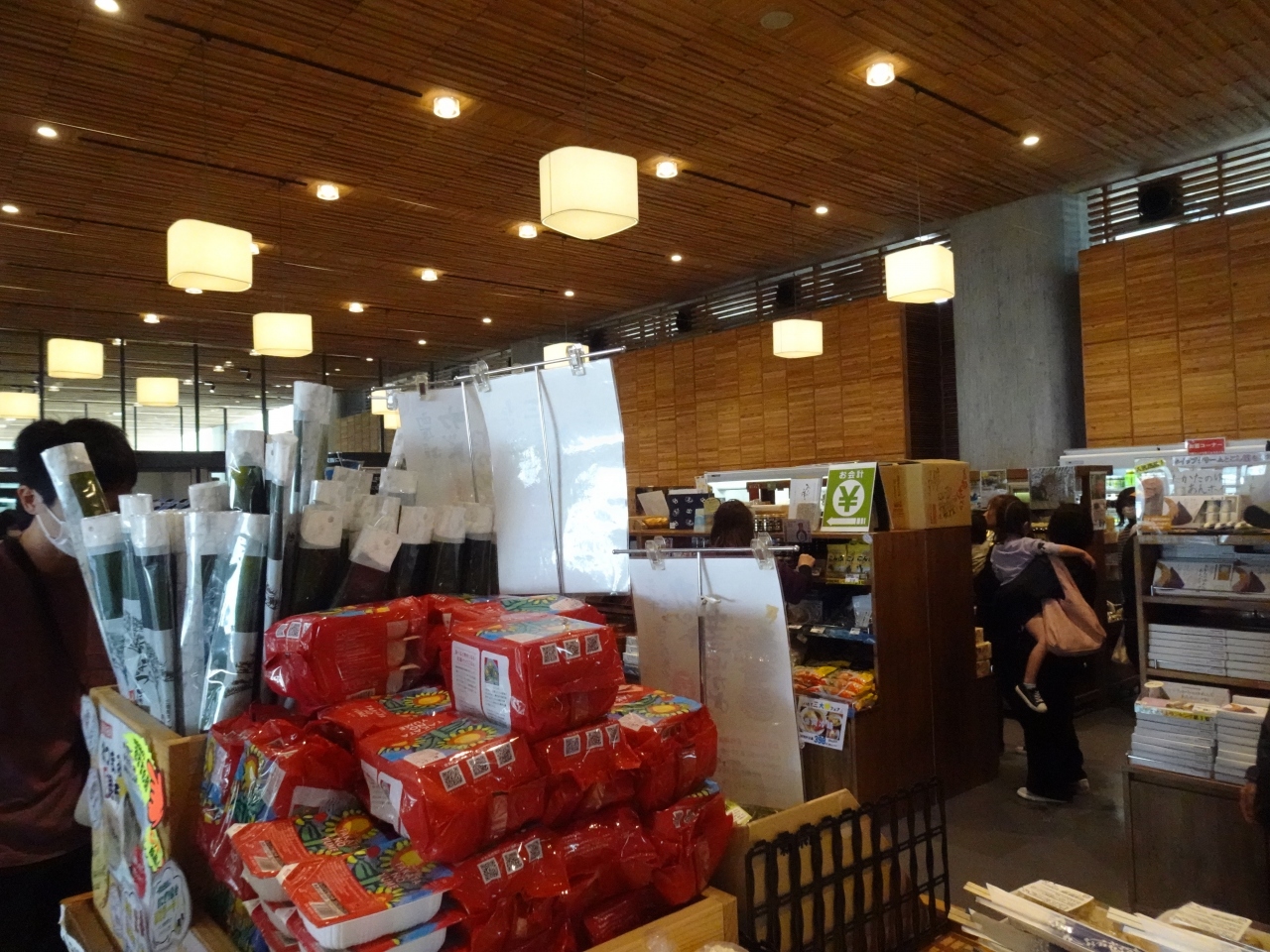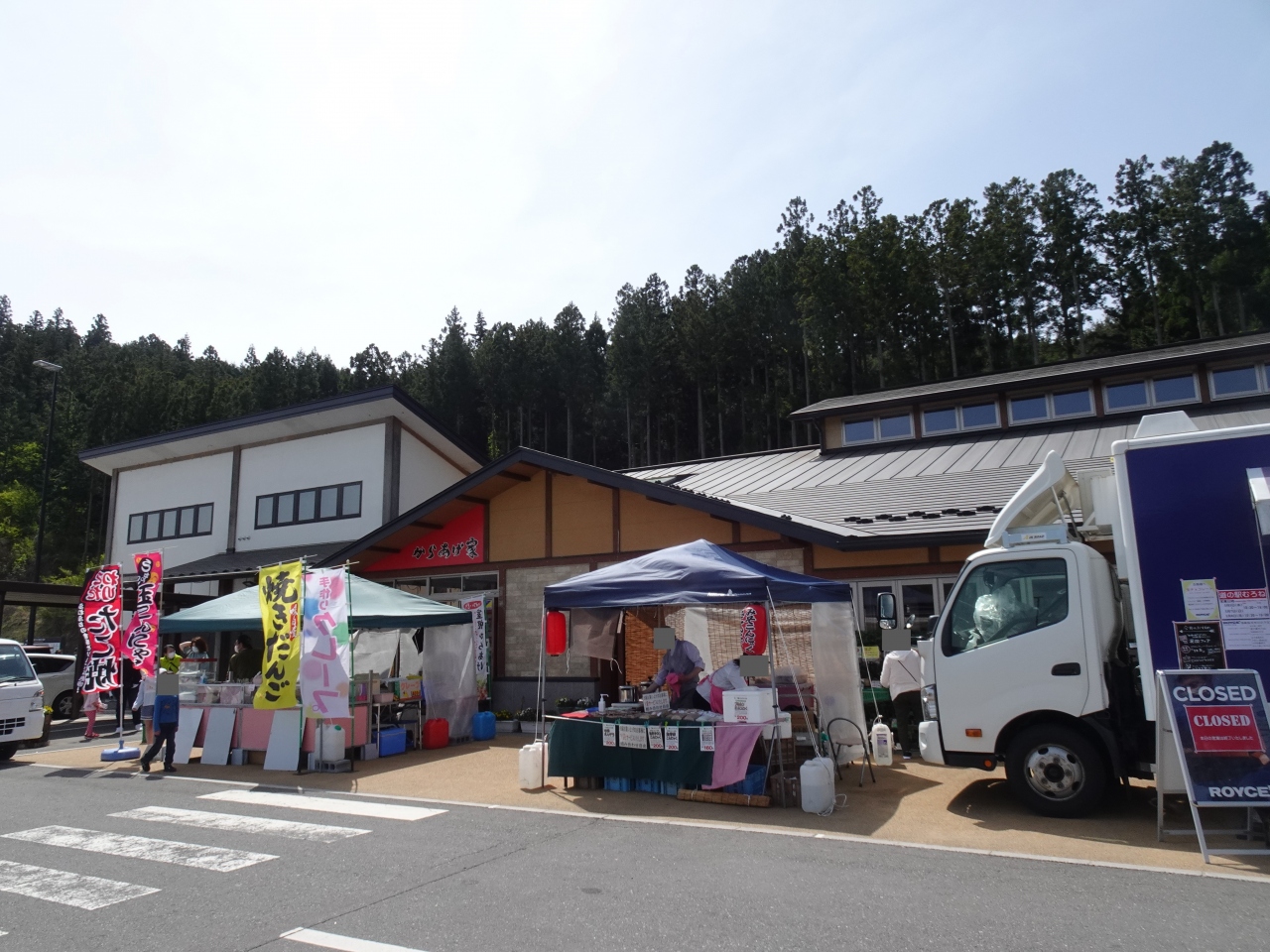 全国でも人気の道の駅としてマスメディアに取り上げられることも多いだけに、5月の大型連休中の施設内は大混雑。直売所や土産店は人で溢れレジは長蛇の列。車も隣接の体育館側にある臨時駐車場に停めるのがやっとでしたが、主要施設の裏側に位置するため、それほど歩かずに済むのは助かります。