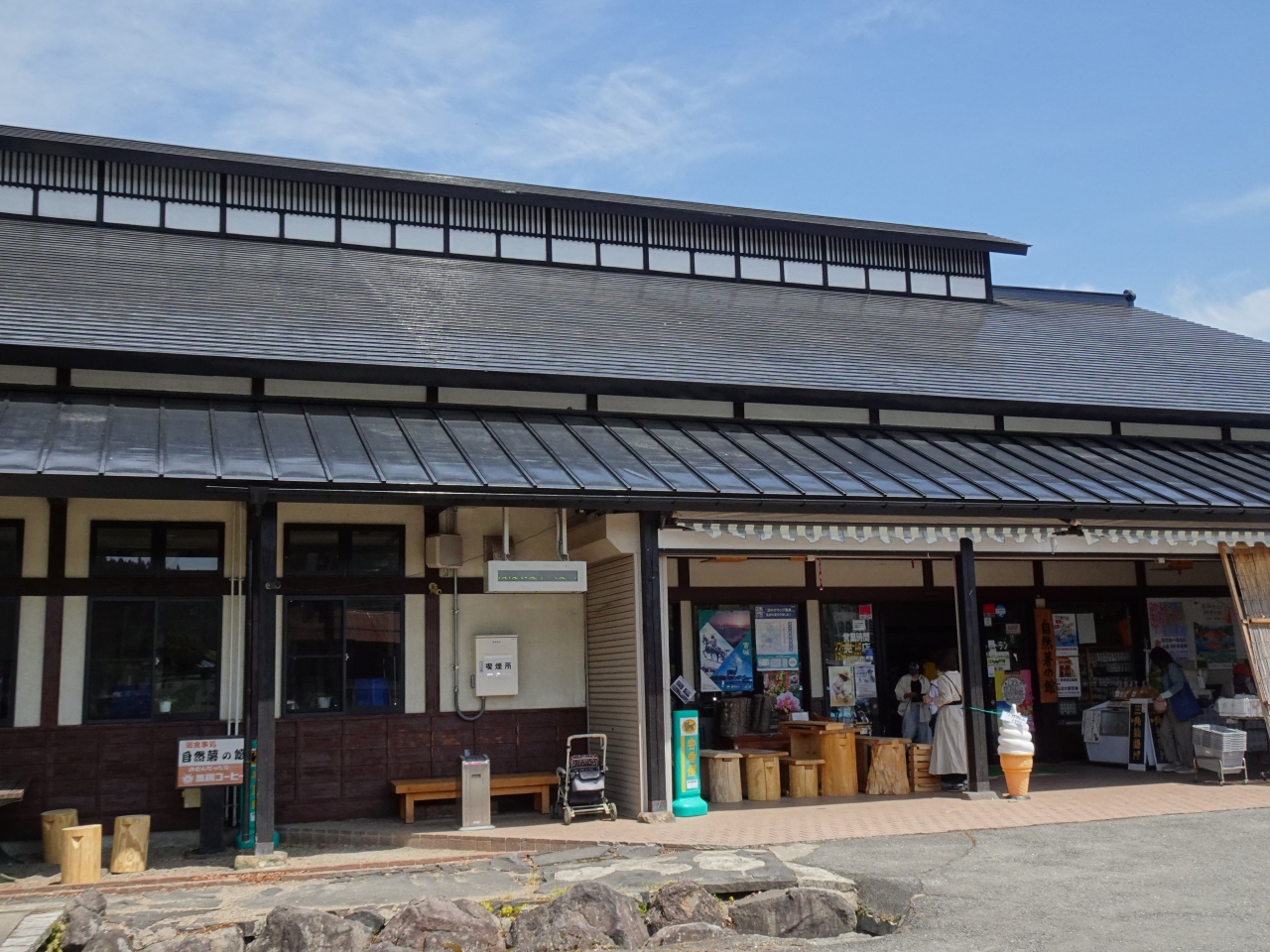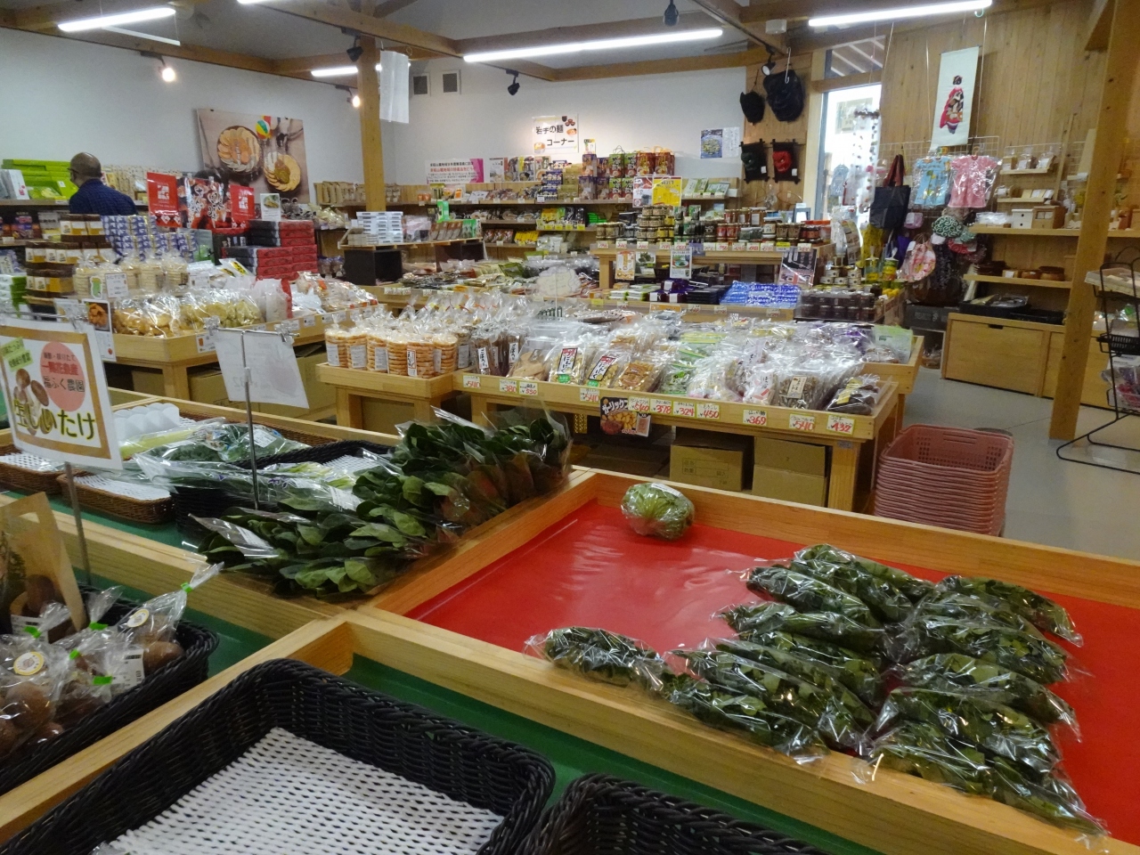 メイン施設の「自然薯の館」は素朴な雰囲気。物産館は広くないものの土産物やきのこ類等の農産品が並んでいました。
