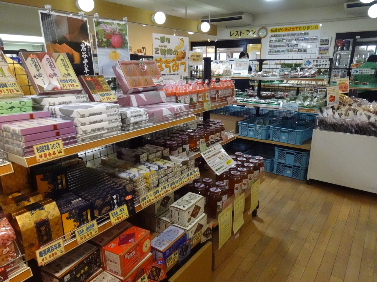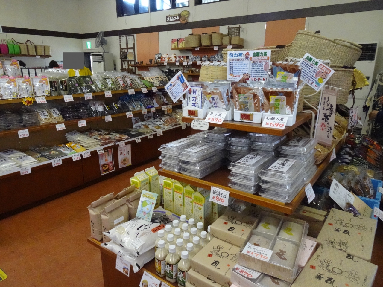 中規模の道の駅で、物産館には産直野菜や土産物が販売される販売コーナーと食事処が、別棟には屋内で休憩ができる防災情報ステーションと一通りの施設が揃っています。