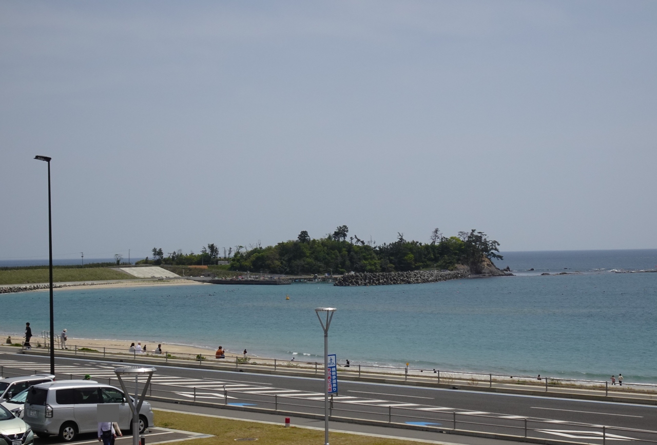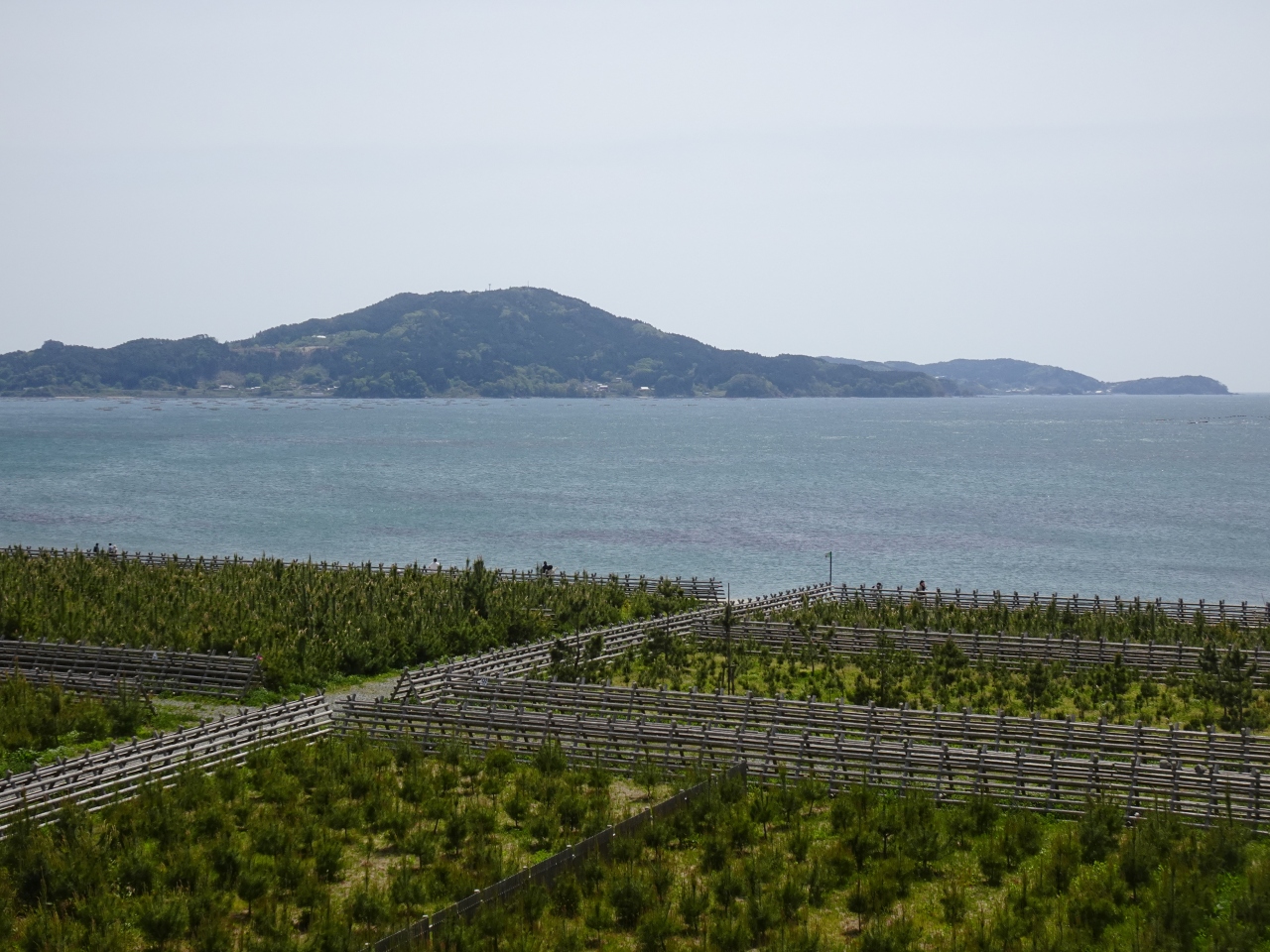 現在マツの木は再植林され、小さいながらも青々とした樹々が美しい海岸線の手前に広がっている様子を土手上から眺めることができます。何年かしてマツの成長とともに景色は変わっていくのでしょうか。
