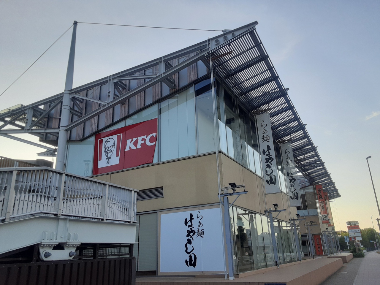 以前あったイタリアンレストランとミズノのスポーツ用品店は閉鎖済。ステーキ店も撤退し、現在は代わりにラーメン店がテナントとして入居。ケンタッキーはイベント時のみの開催のため、通常時に営業する飲食店は、以前からあるロイヤルホストとらぁ麺はやし田の2店舗のみと寂しい陣容となっています。