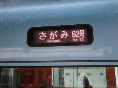 小田原駅から新宿駅まで上りの「さがみ号」に乗車。ホームに登場したのはフェルメール・ブルーのMSE60000形車両でした。