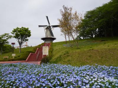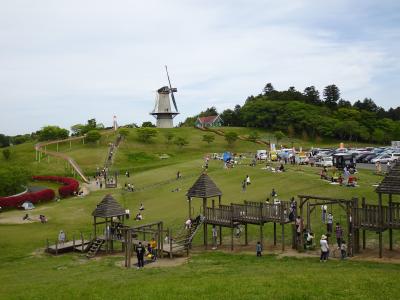 丘の上に立つオランダ風車がシンボル。風車はオランダから持ち込んだとのこと。風車の脇からは長さ110メートルのローラー滑り台があり、家族連れや子どもたちの人気を集めていました(無料。専用の段ボールは園内の売店にて150円で販売)。